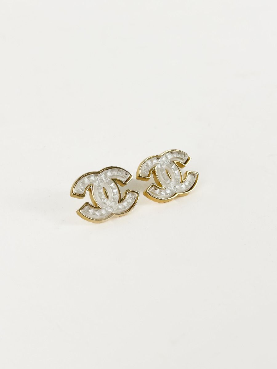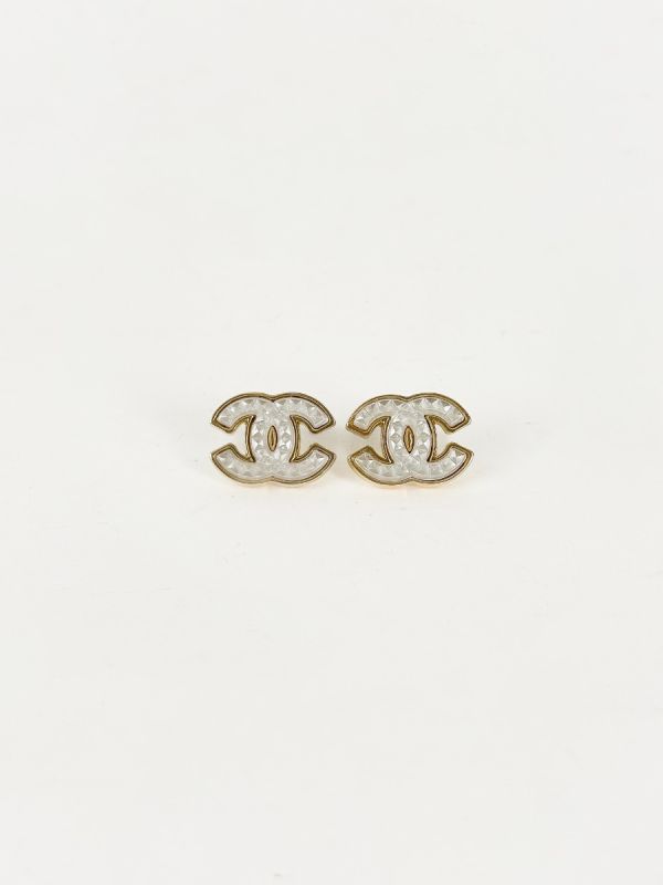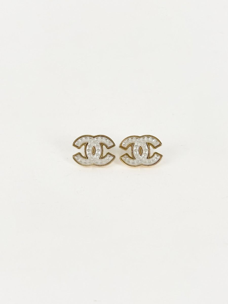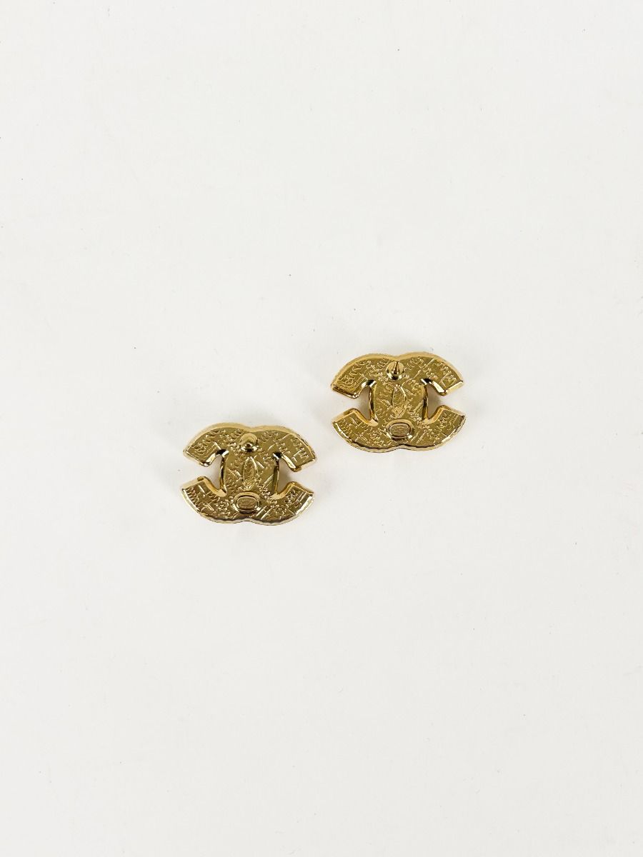 Chanel earrings in the iconic double C shape, crafted from gold-plated metal enhanced with a textured pearlescent effect. A chic and timeless design, perfect for adding an elegant touch to any outfit, day or night.