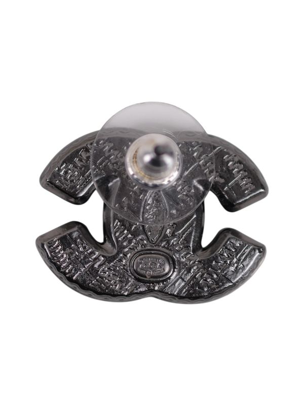 Boucles d’oreilles Chanel en forme de double C iconique, réalisées en métal noir à l’effet clouté texturé. Un modèle au style rock chic et résolument moderne, qui apporte une touche de caractère et d’élégance à toutes les tenues, aussi bien en journée qu’en soirée.