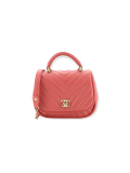 Chanel Reverse Round Flap Bag In Pink Chevron Leather