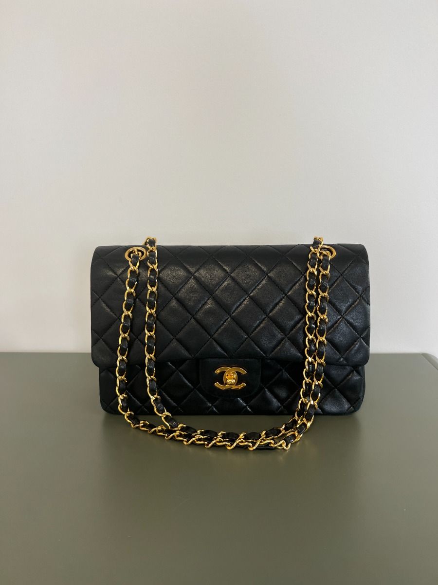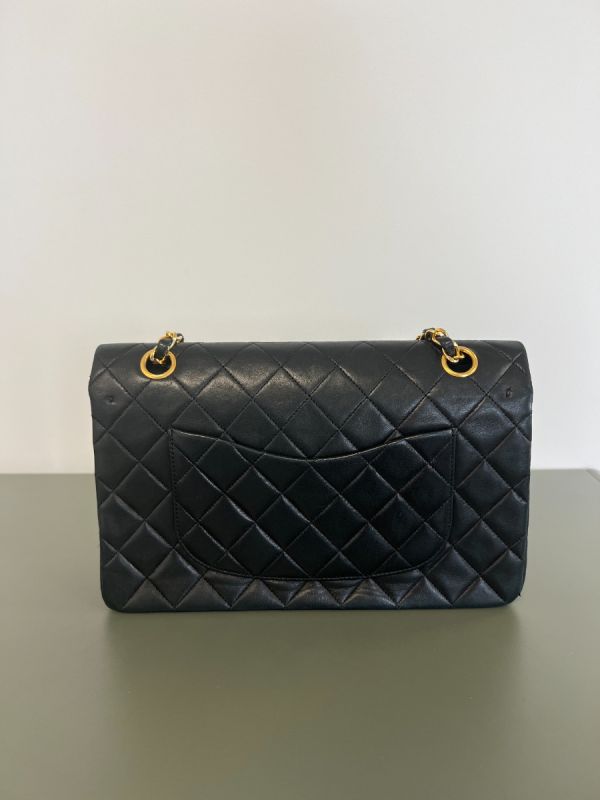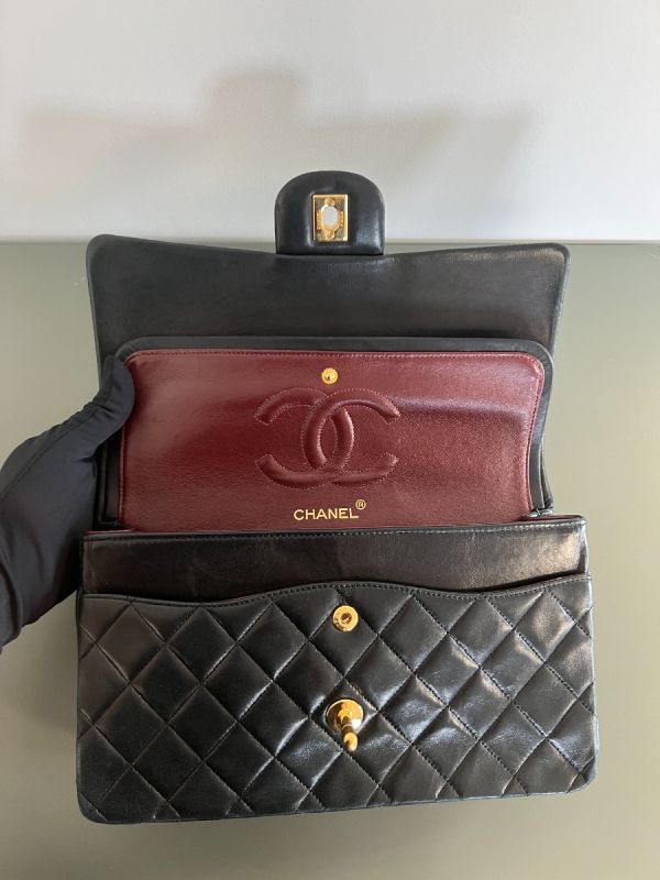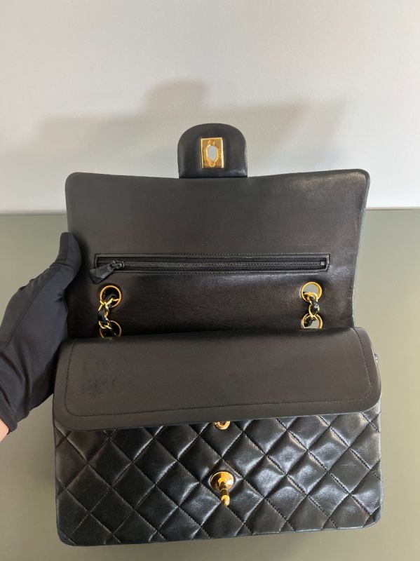 Chanel Double Flap Bag Timeless Vintage In Black Lambskin