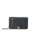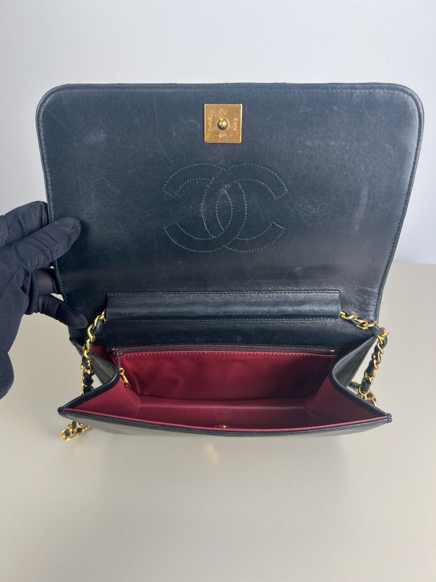 This vintage Chanel Wallet on Chain crafted in black quilted lambskin leather features an elegant design with a single long flap. The combination of lambskin leather and 24-carat gold-plated hardware gives this bag a luxurious and sophisticated allure. Perfect for special occasions, this Wallet on Chain offers chic practicality with its compact design and elegant golden chain. It can be worn over the shoulder.