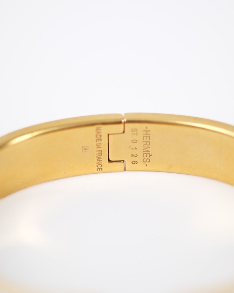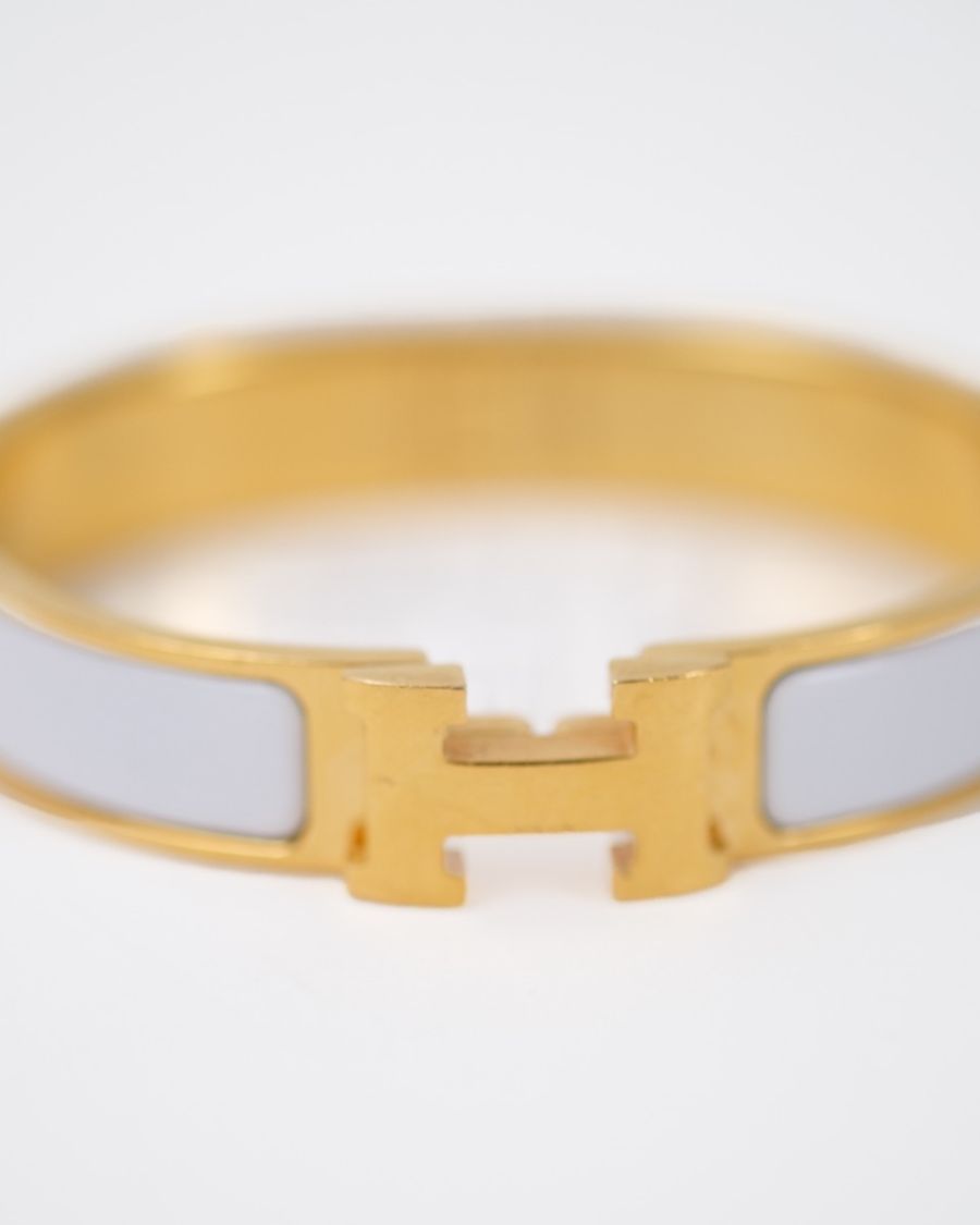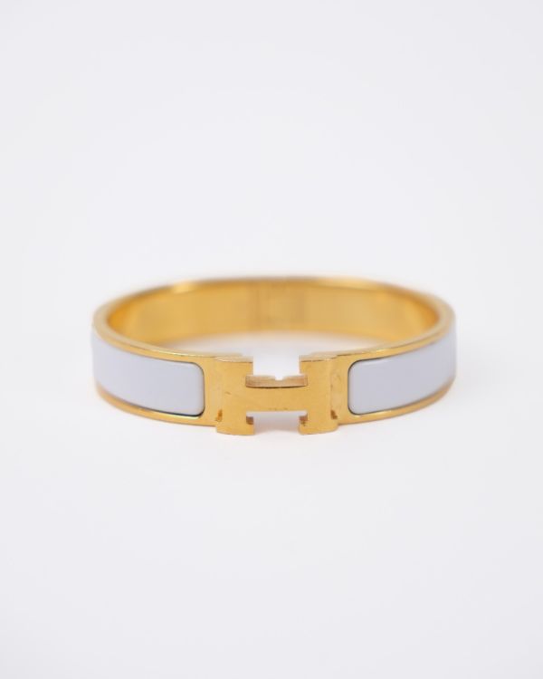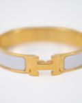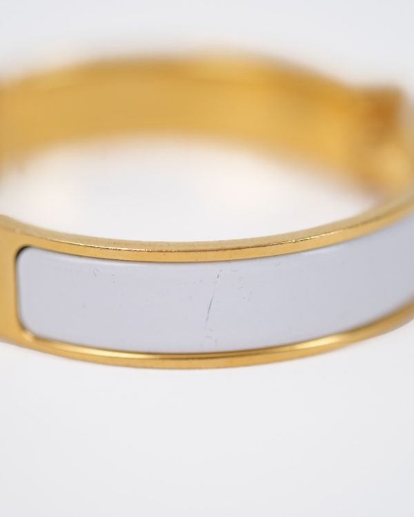 Hermès Clic H bracelet in white enamel with a gold-plated finish, a symbol of chic and understated style. Combining modernity and sophistication, it enhances the wrist with a touch of timeless elegance characteristic of Hermès.