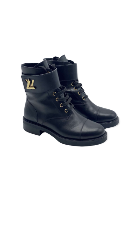 This trend ranger boot are crafted with calf leather and features an "LV" twist buckle.
