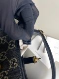Exquisite Gucci Jackie 1961 Shoulder Bag. This iconic accessory, blending black leather and denim with GG motif, features golden details and a sophisticated closure. It comes with a handle, an elegant black leather shoulder strap, and the renowned three-striped extendable shoulder strap unique to the brand. Wear it by hand, crossbody, or on the shoulder.