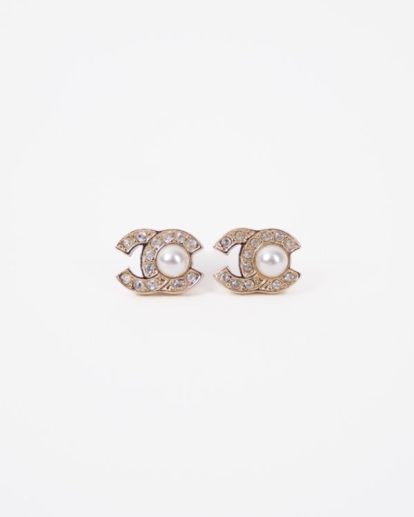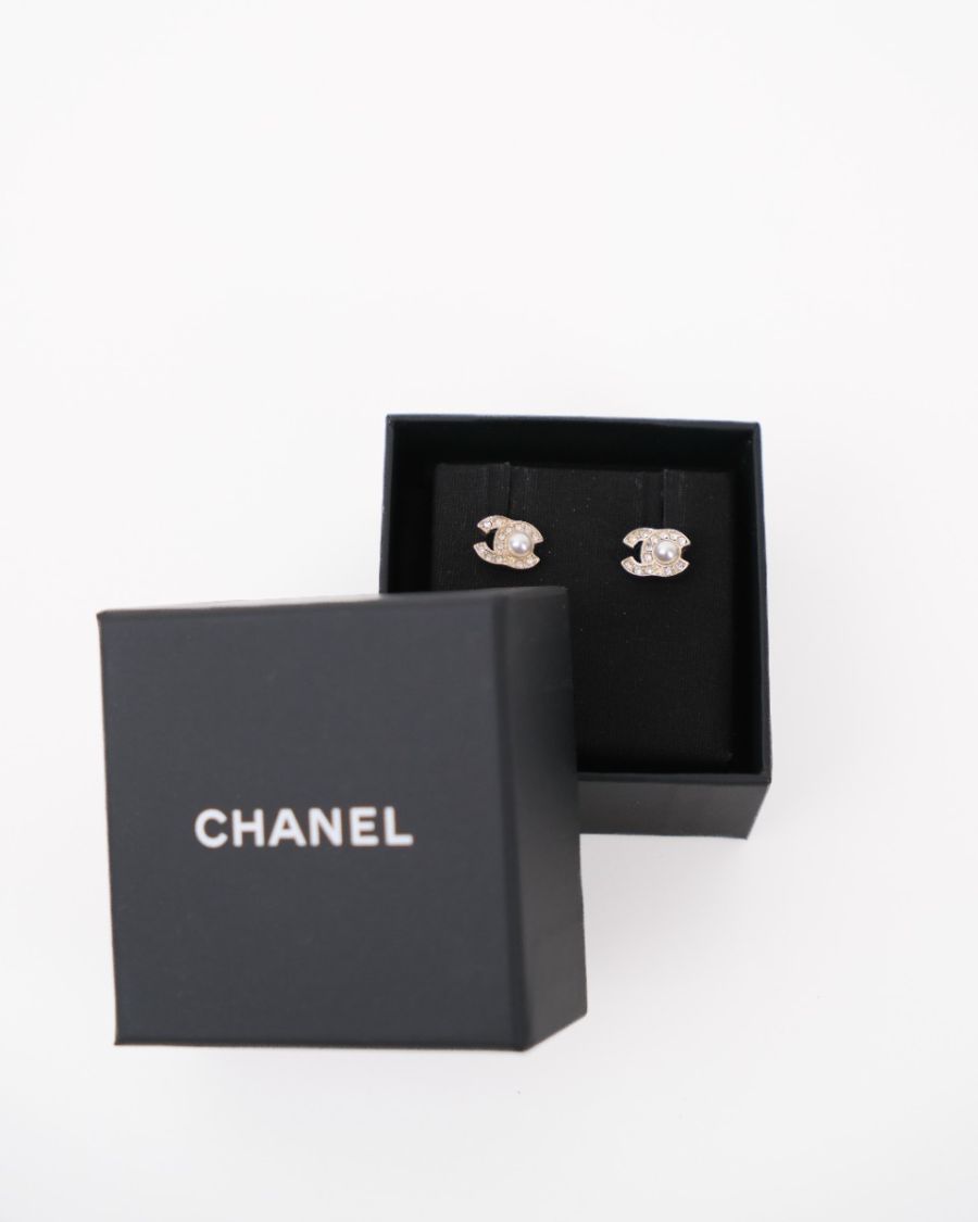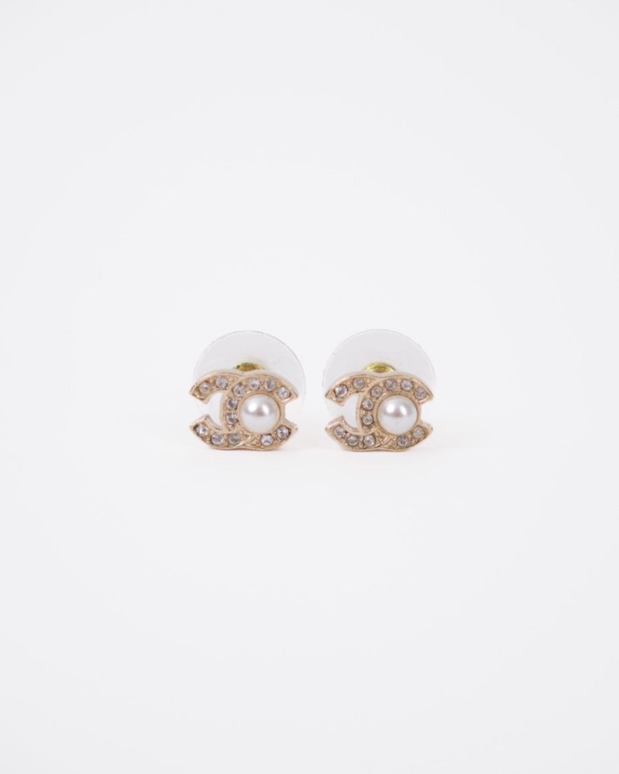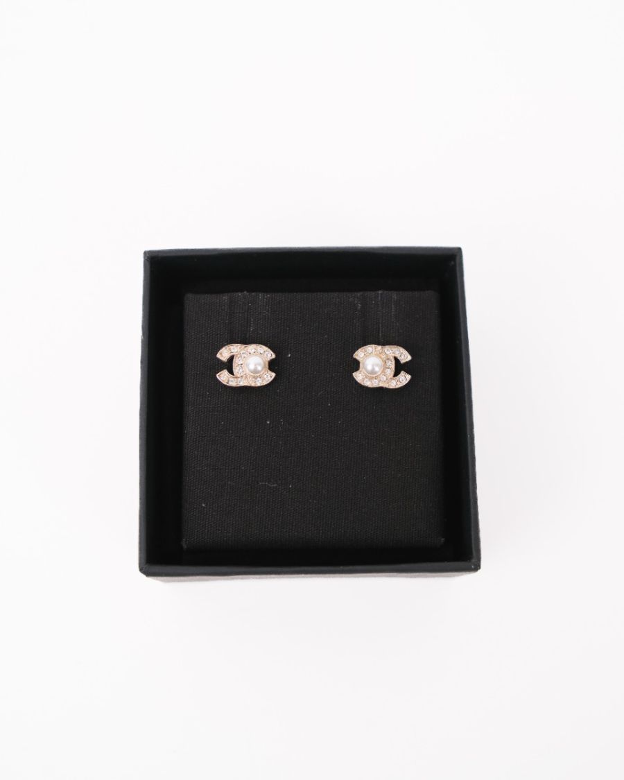 Small Chanel Stud Earrings with Rhinestones and Pearls