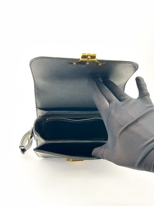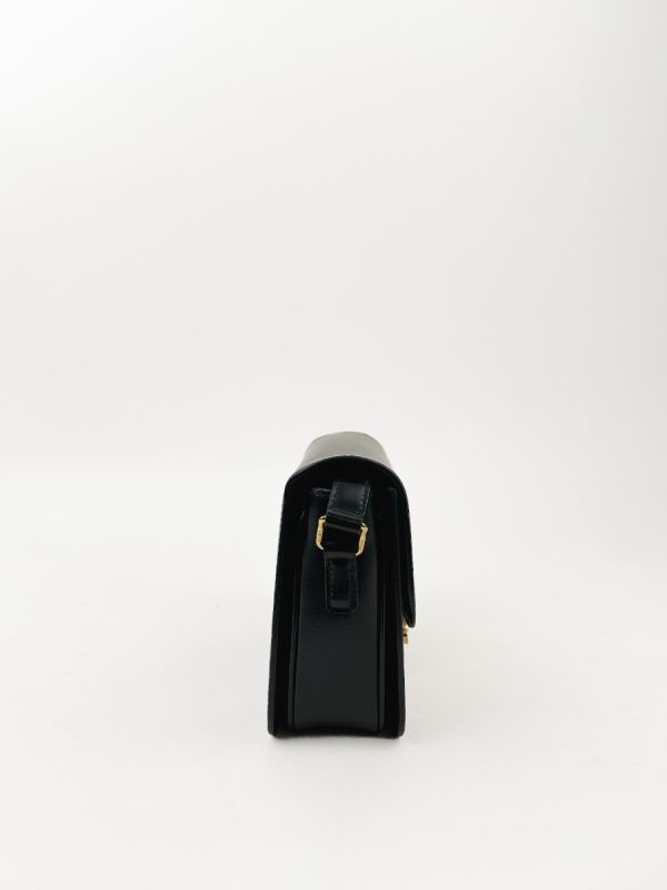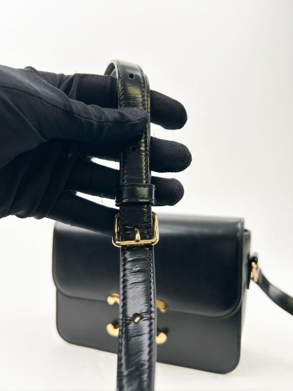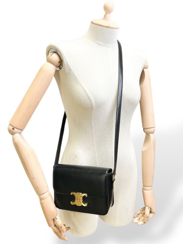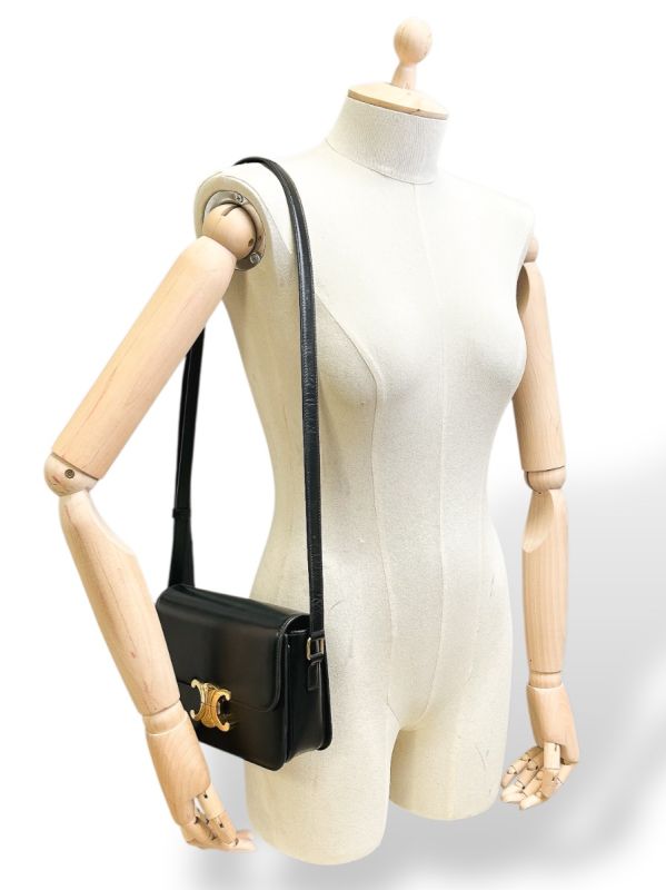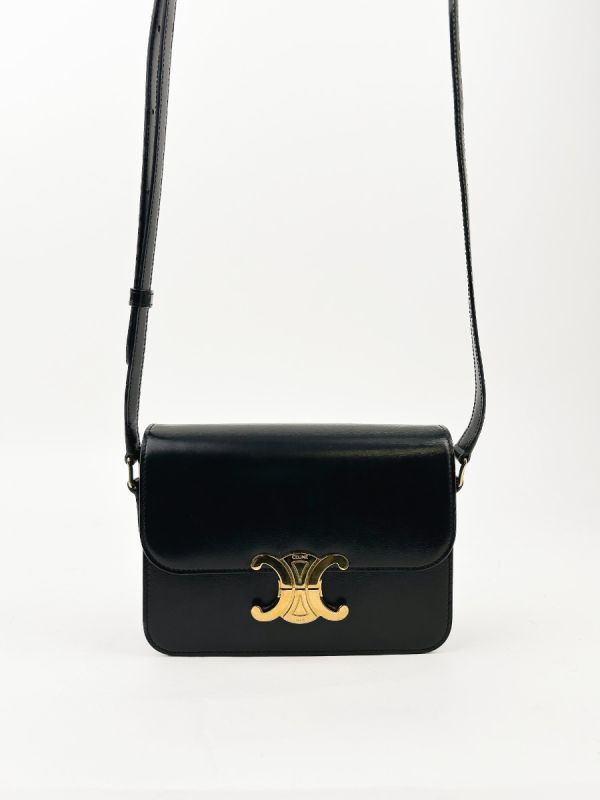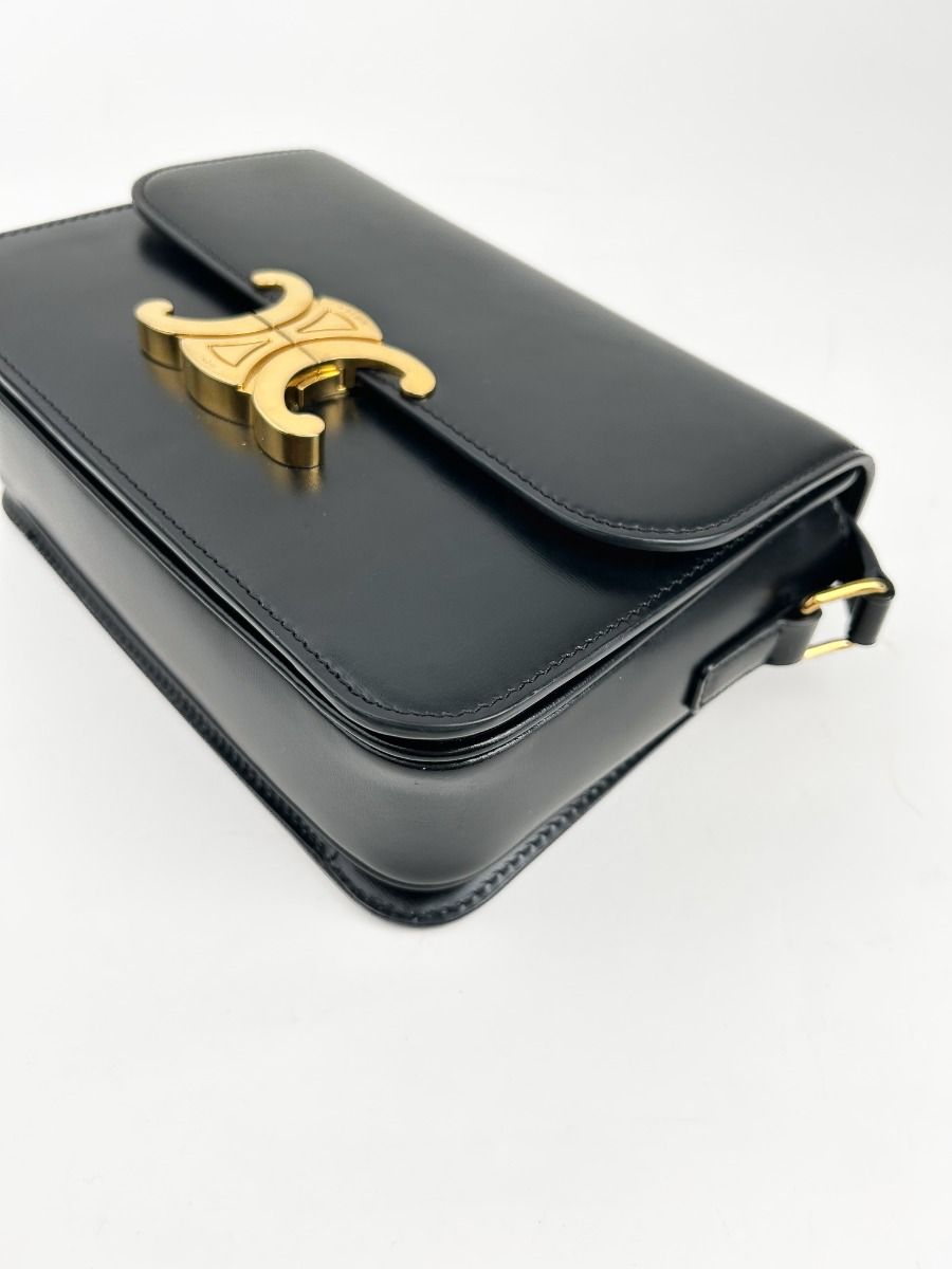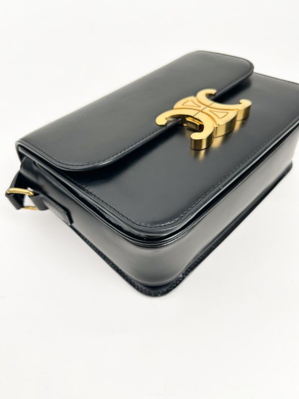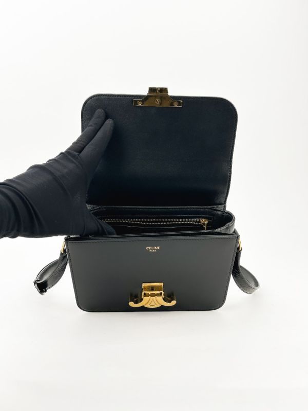 Celine Triomphe Teen Shoulder Bag in Black Leather