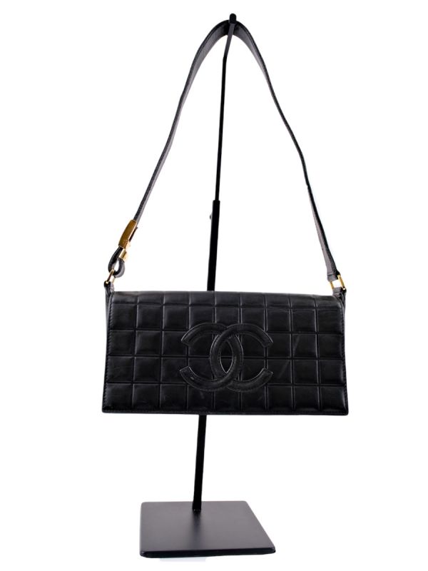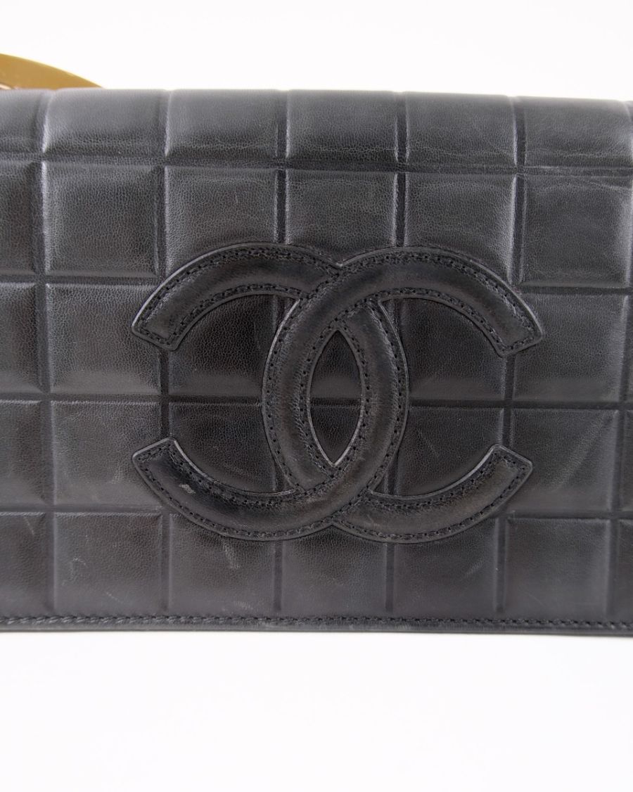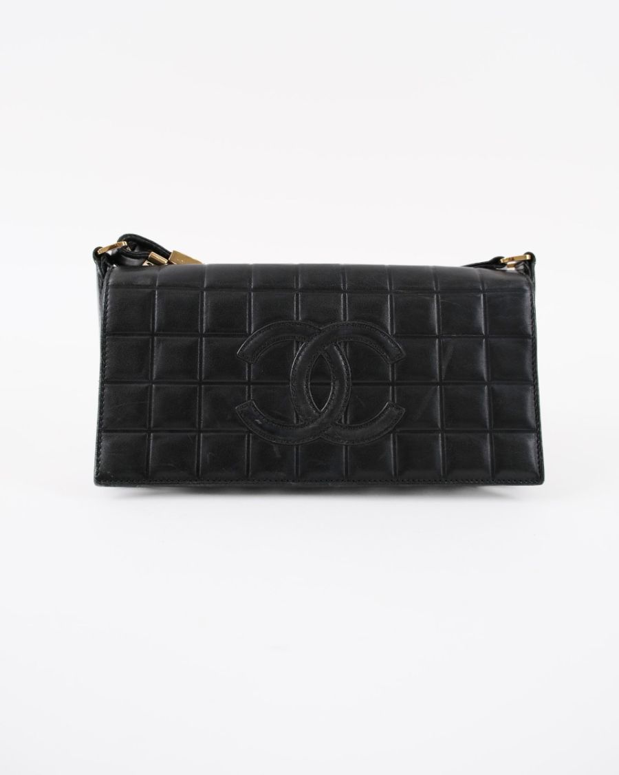 Chanel East West Chocolate Bar Vintage Black Leather Handbag