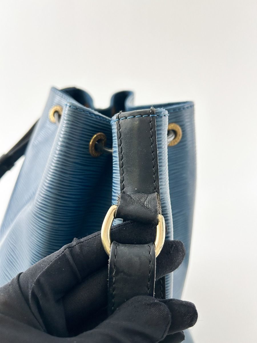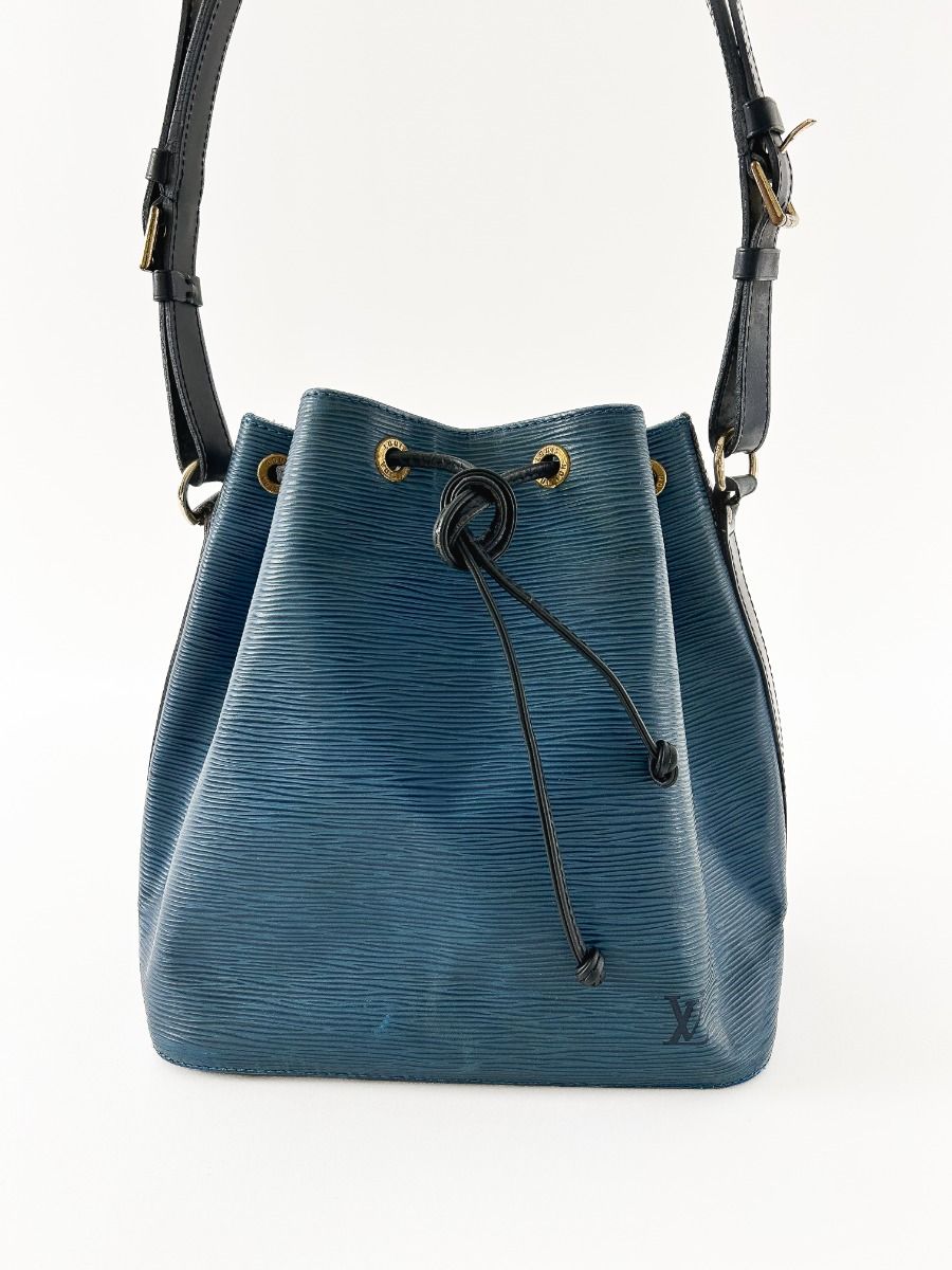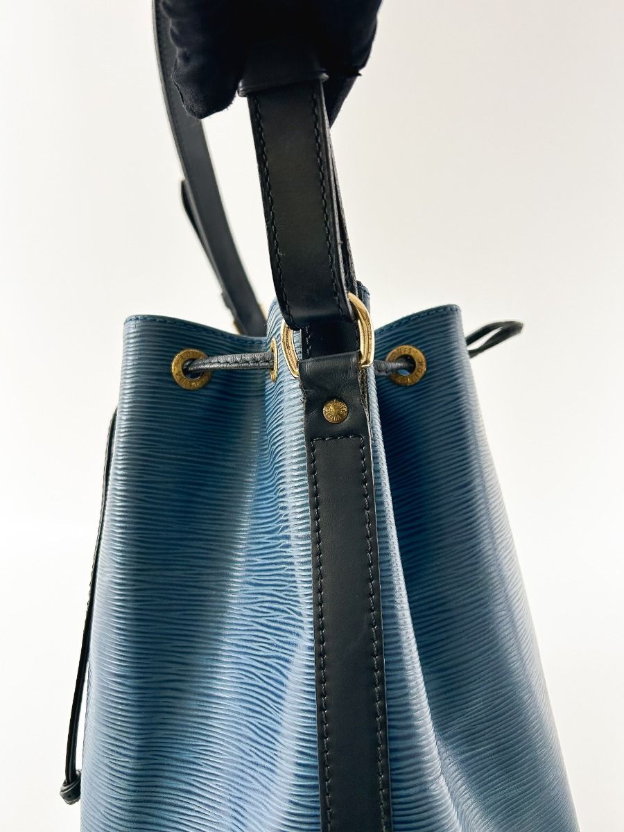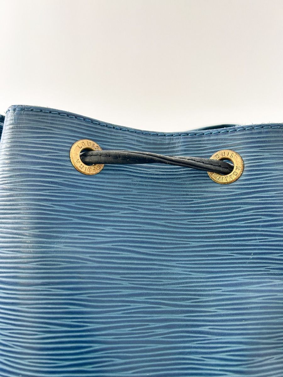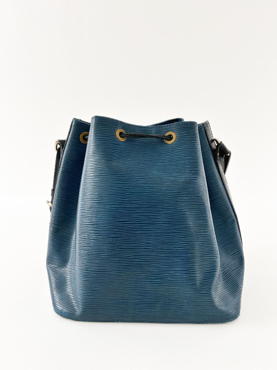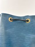 Louis Vuitton Noé blue Épi leather handbag, an iconic model from the House. Recognizable by its signature textured leather and emblematic drawstring shape, it combines elegance and practicality. Spacious and timeless, this bag is ideal for everyday use with a touch of refined luxury.