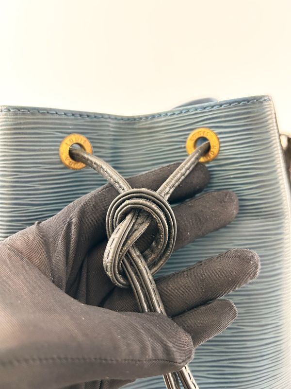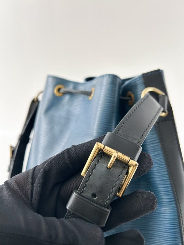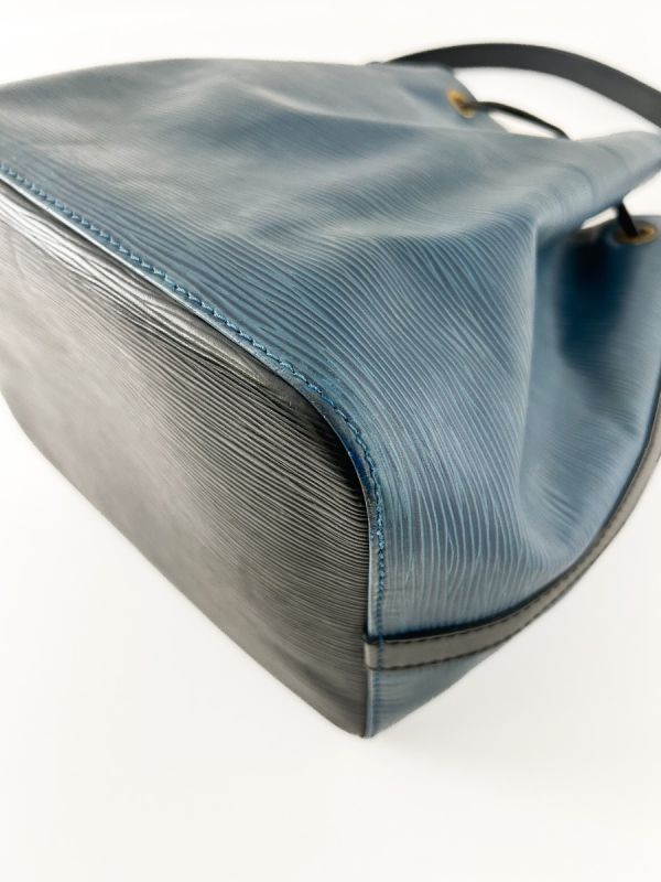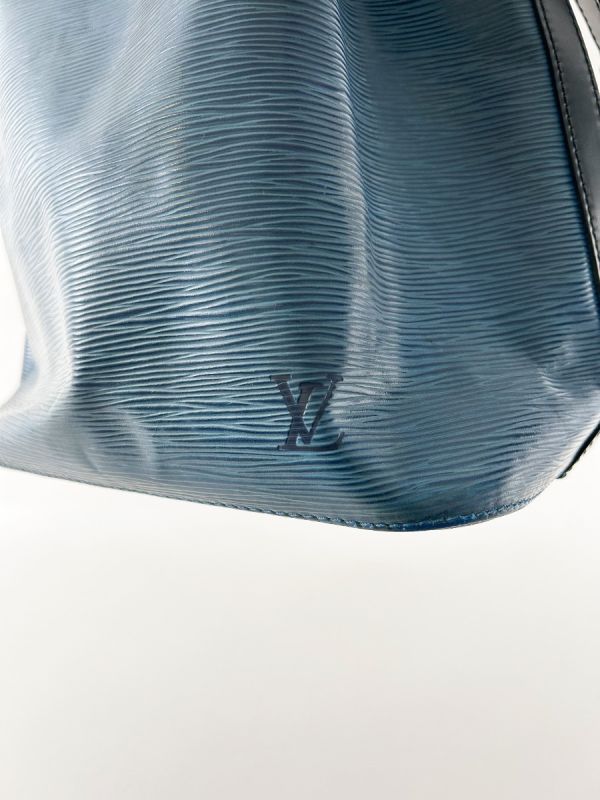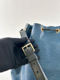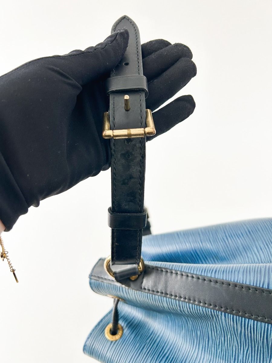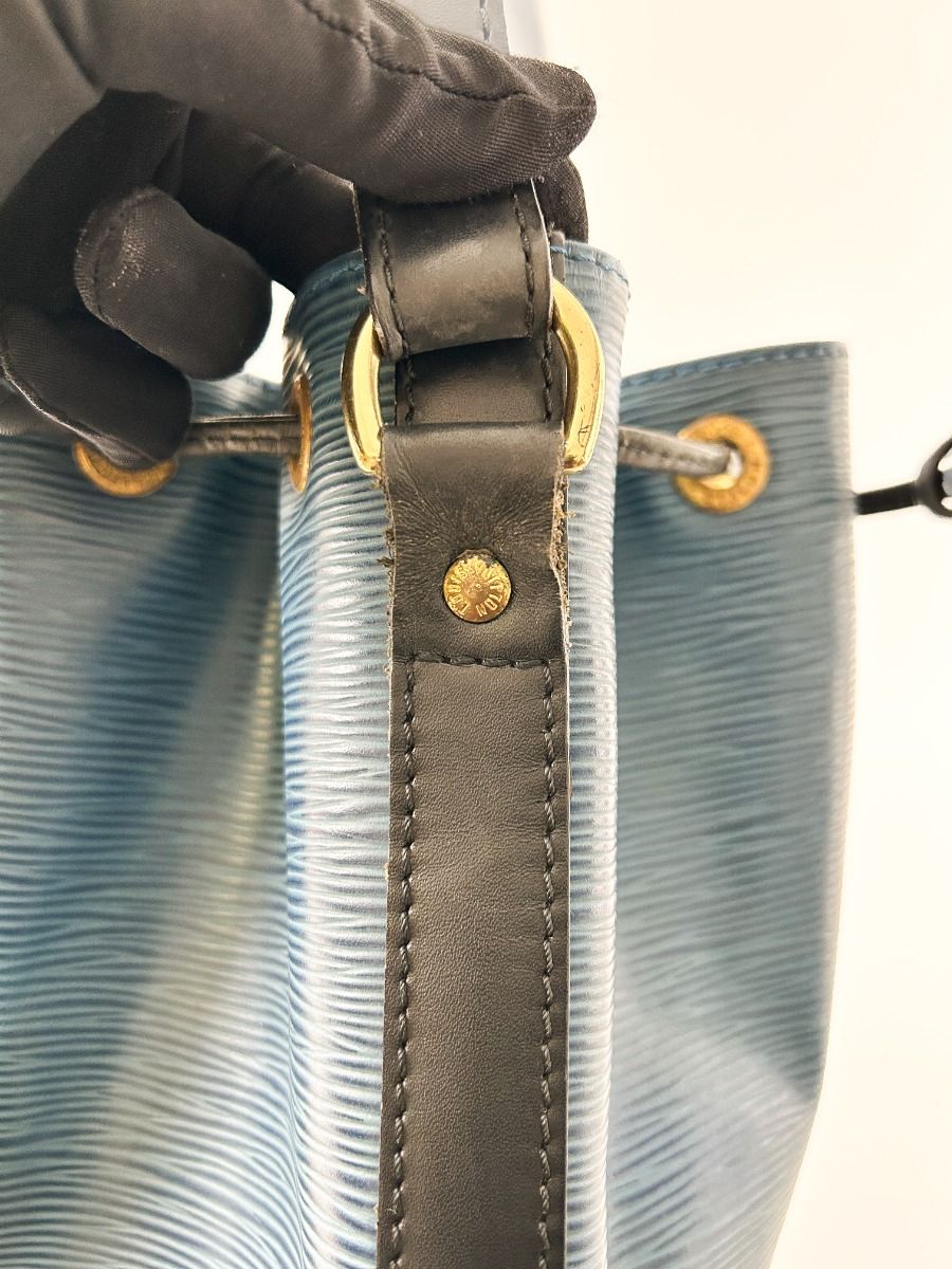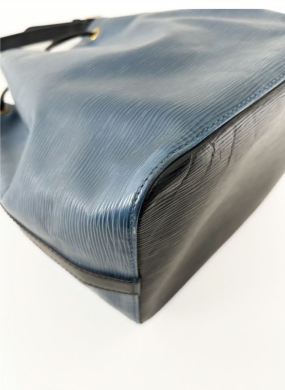 Louis Vuitton Noé blue Épi leather handbag, an iconic model from the House. Recognizable by its signature textured leather and emblematic drawstring shape, it combines elegance and practicality. Spacious and timeless, this bag is ideal for everyday use with a touch of refined luxury.