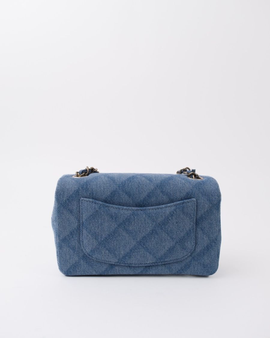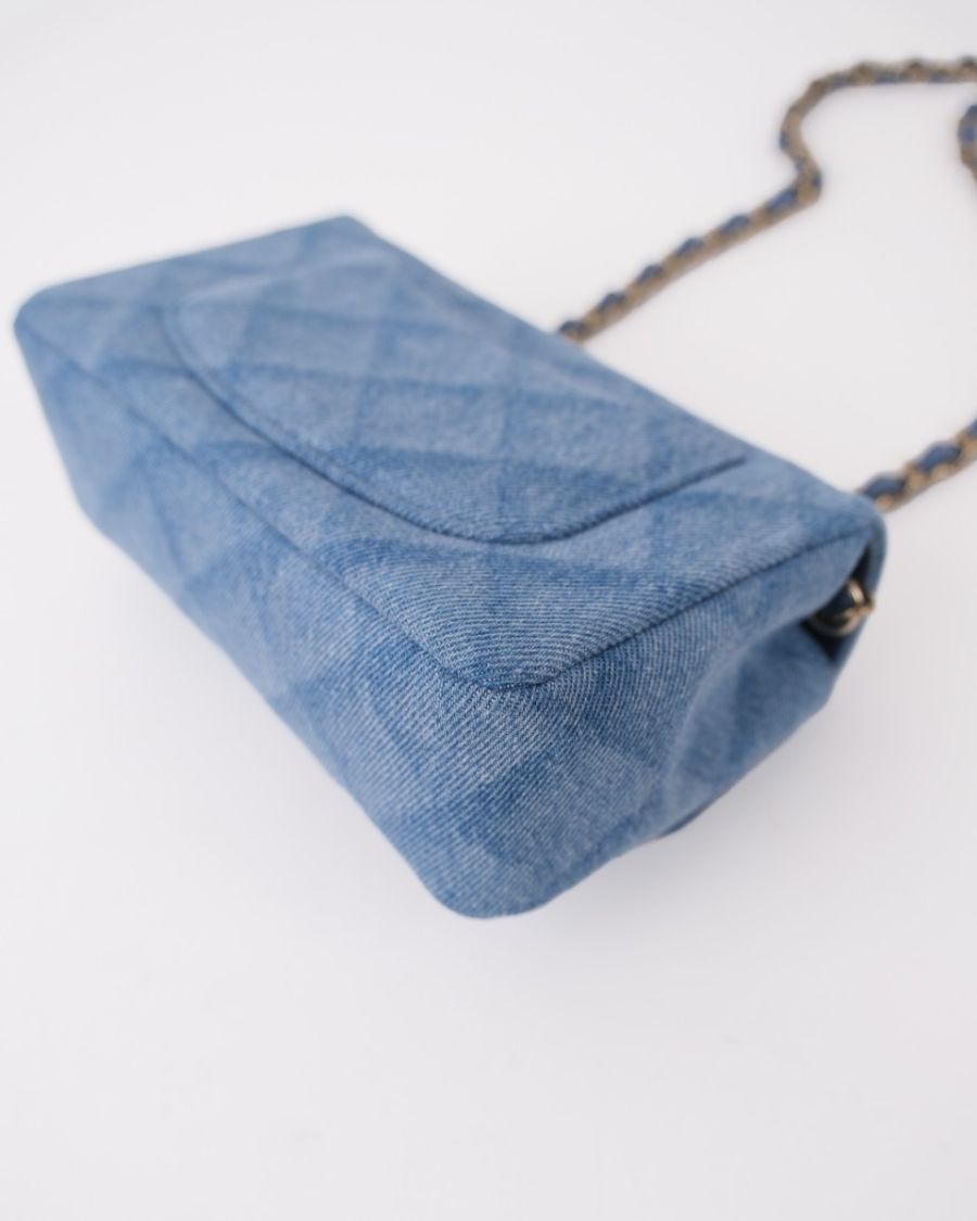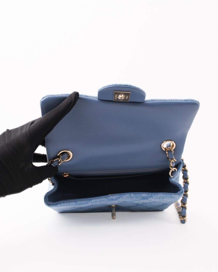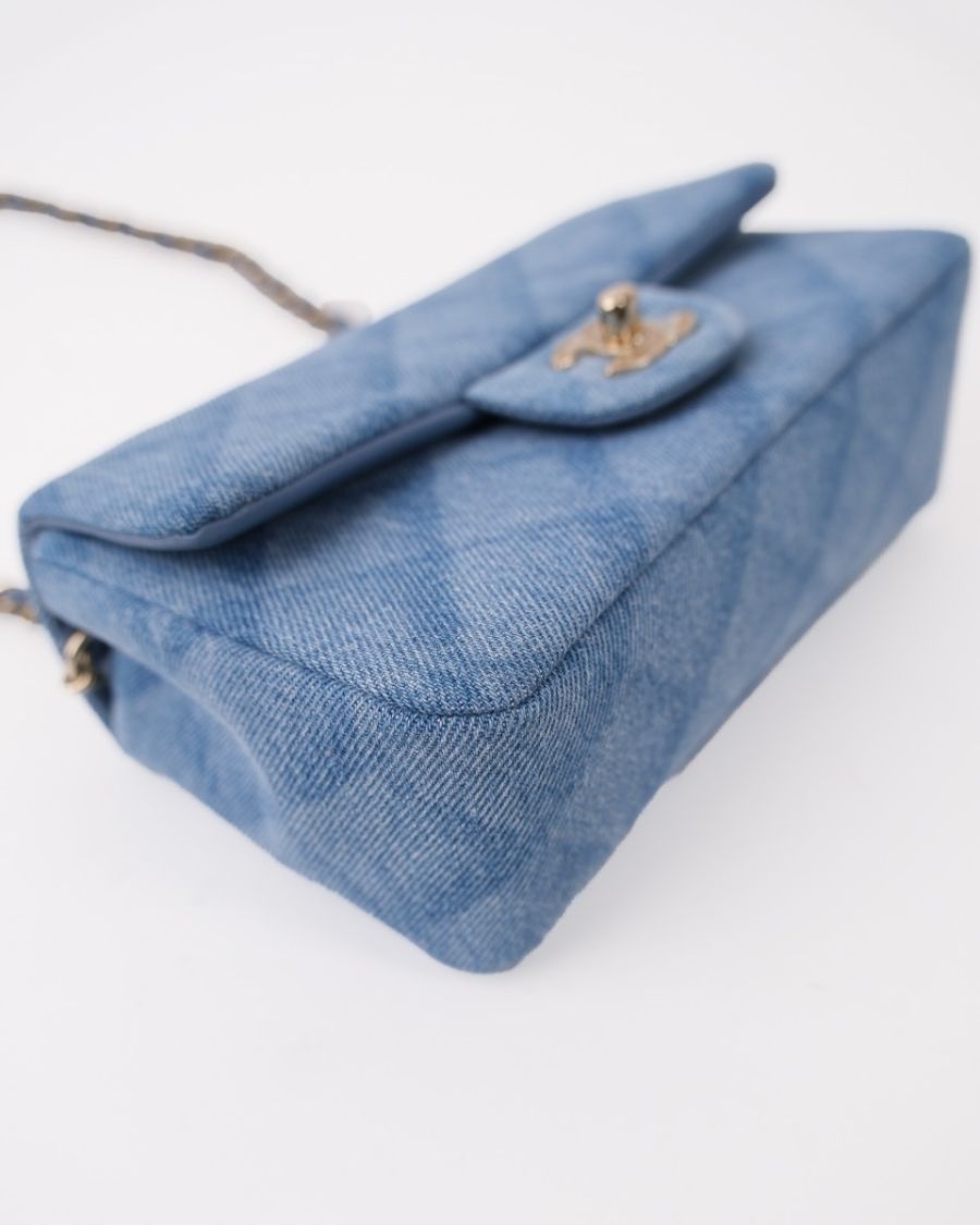 This blue denim Chanel bag embodies the timeless elegance of the House of Chanel, enhanced by a modern and casual touch. Crafted from refined denim, it offers a chic and contemporary look, ideal for enhancing both everyday outfits and more sophisticated looks. Its iconic interlocking CC clasp and intertwined leather and gold metal chain are testament to the brand's emblematic craftsmanship and attention to detail. Compact yet functional, this bag is designed to accompany you in style at every moment, while asserting a discreet and confident luxury.