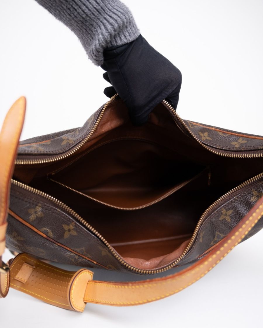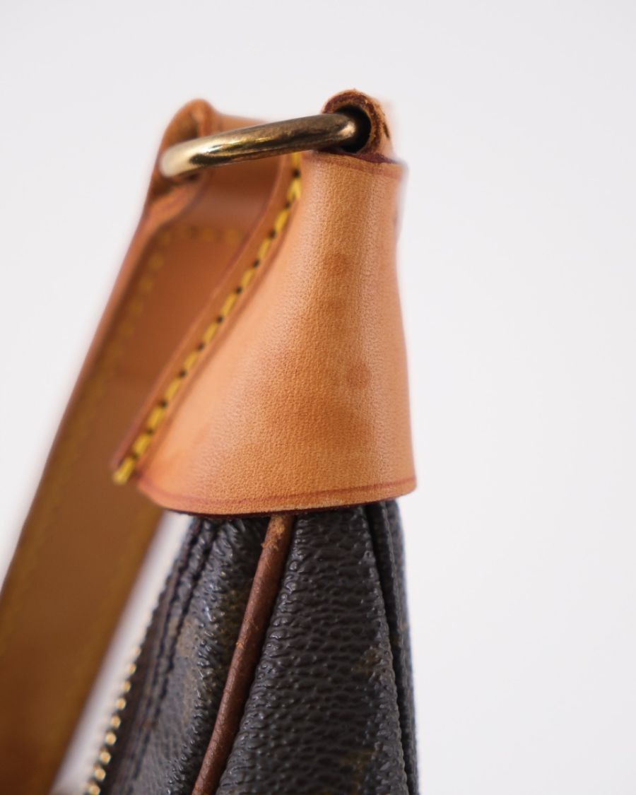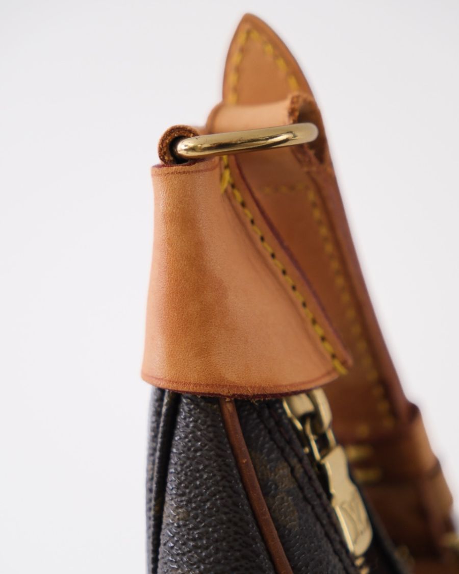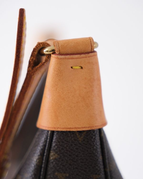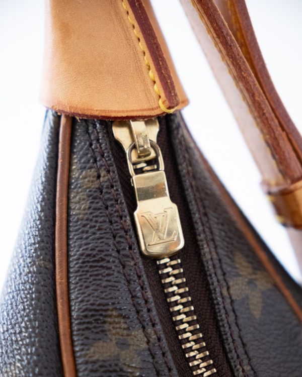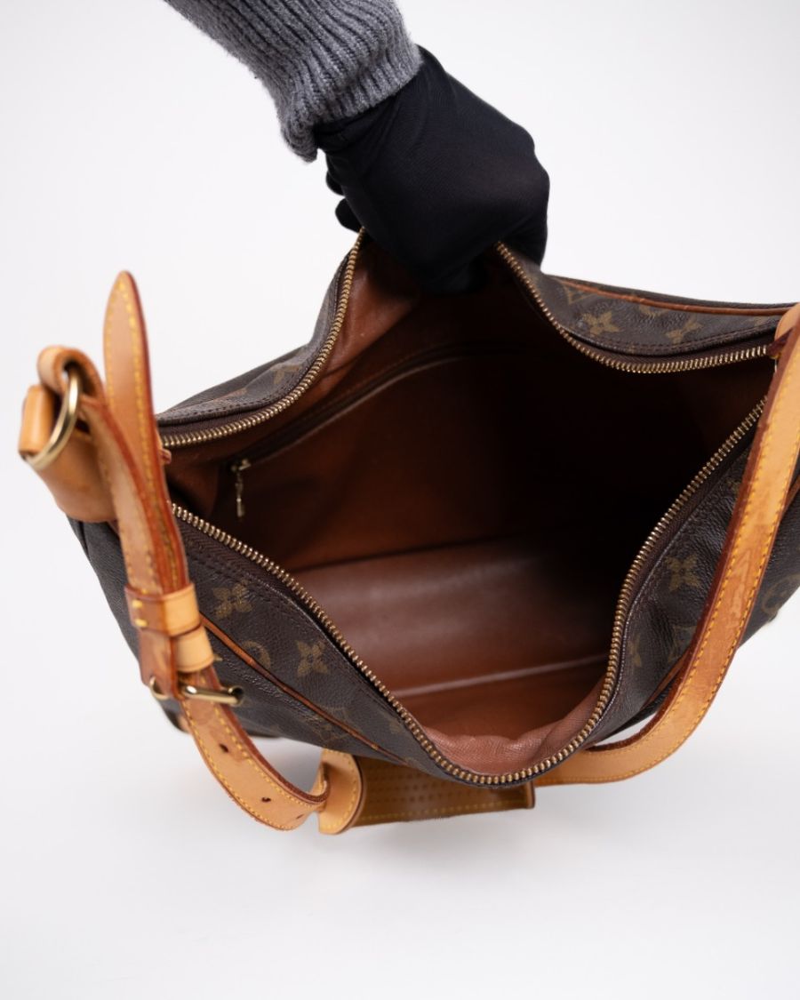 Vintage Louis Vuitton Boulogne bag in Monogram canvas, enhanced with natural leather trim. Its iconic half-moon shape and adjustable shoulder strap make it comfortable to carry on the shoulder. A timeless and practical model, emblematic of Louis Vuitton's vintage style, ideal for everyday use. - Gold hardware
