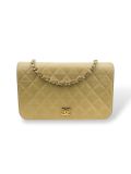 Refined and timeless, this Chanel Wallet on Chain bag captivates with its beige quilted leather, a symbol of elegance and femininity. Adorned with the golden CC logo on the flap, it perfectly embodies the iconic style of the House. Its golden chain intertwined with beige leather allows it to be worn over the shoulder or across the body, ideal for a chic look on any occasion.