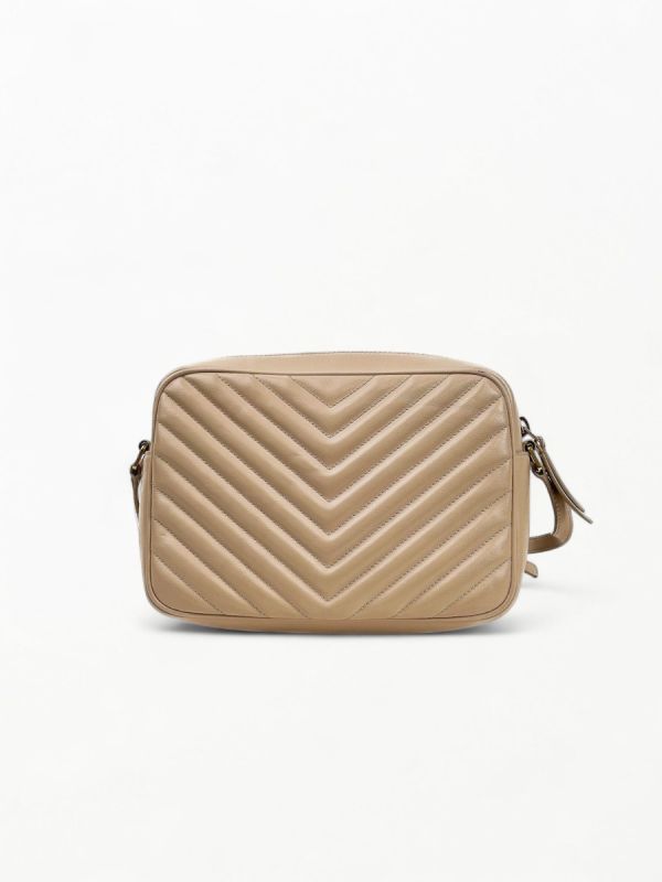 Discover the Saint Laurent Lou bag in beige quilted leather, adorned with the iconic Cassandre logo. Compact and elegant, it can be worn on the shoulder or crossbody thanks to its adjustable strap.