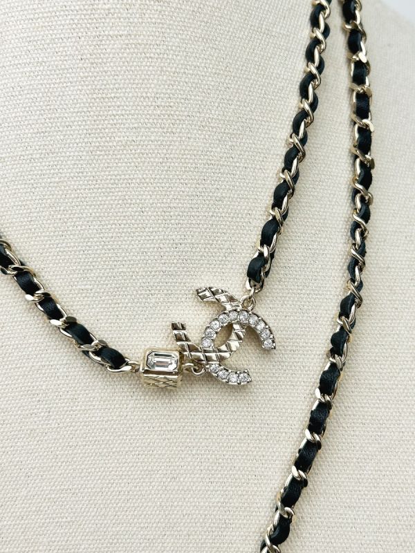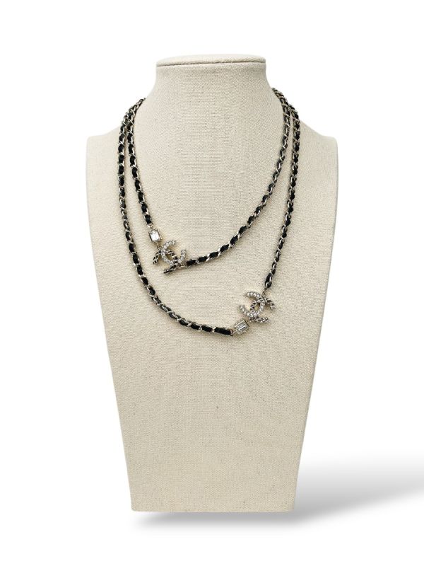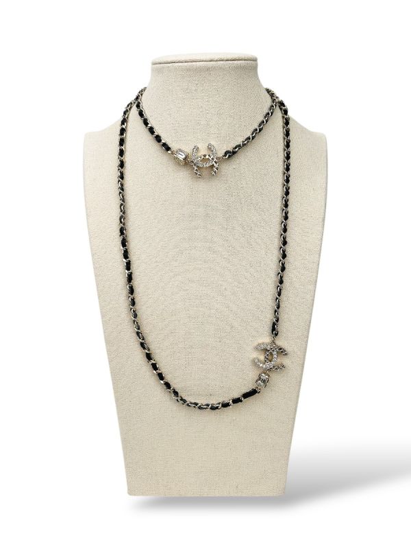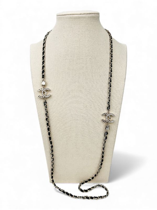 This Chanel rhinestone necklace with double CC logo will brighten up your outfits with its iconic intertwined chain and sparkling pendants. Elegant and refined, it adds a touch of glamour to your looks, from everyday wear to special occasions. A timeless piece from Chanel, ideal for enhancing your style.
