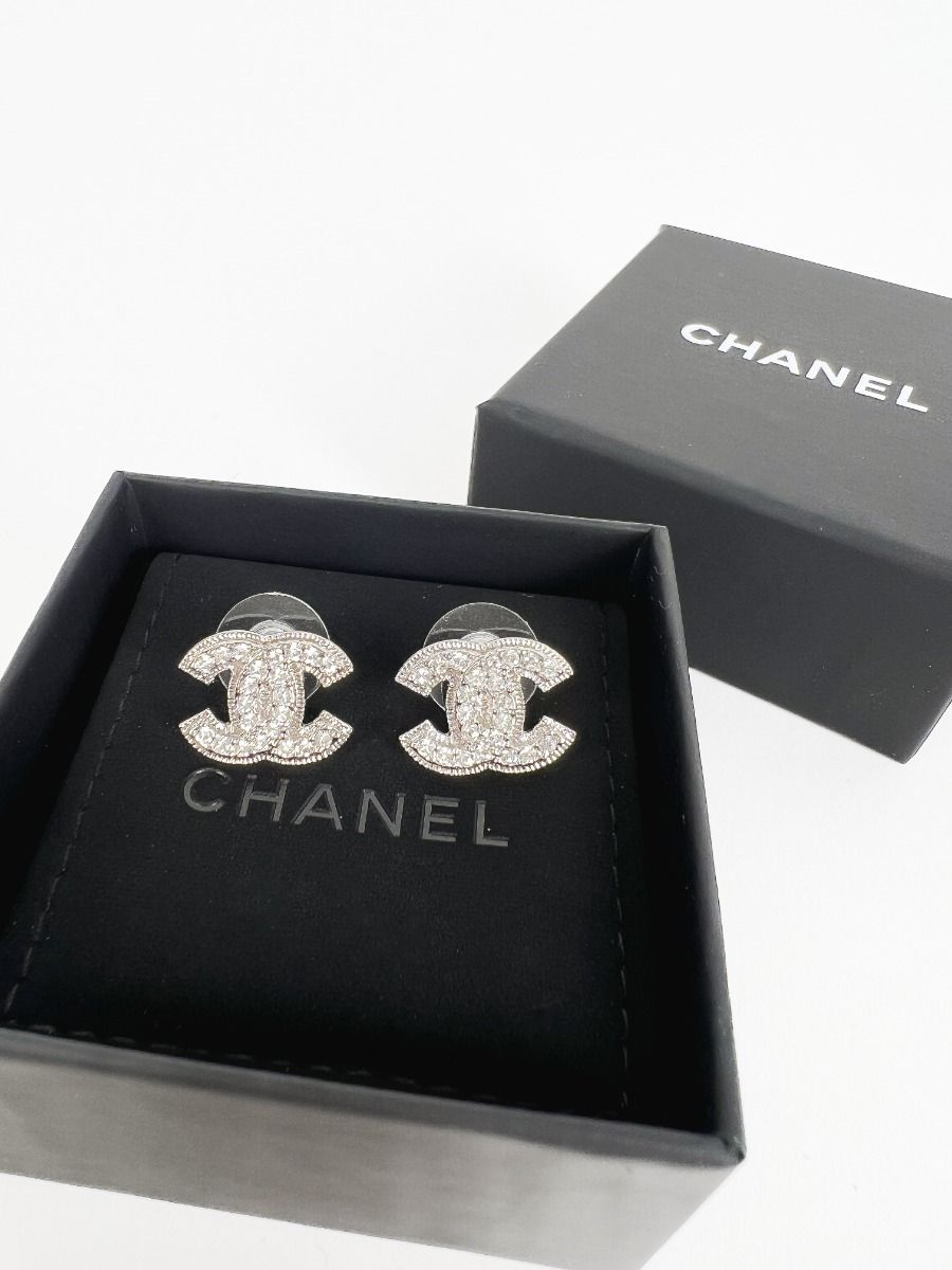 An timeless addition to your collection, the classic 'CC' Earrings in silver-tone metal adorned with rhinestones.