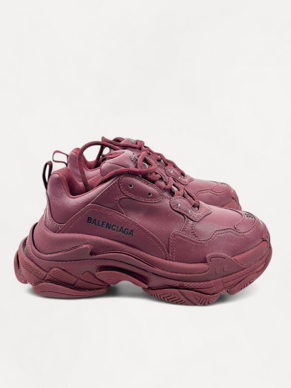 Baskets Triple S Balenciaga Cuir Bordeaux Taille 38