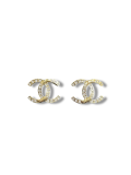 Boucles Chanel Torsadées Double CC À Strass Et Métal Doré