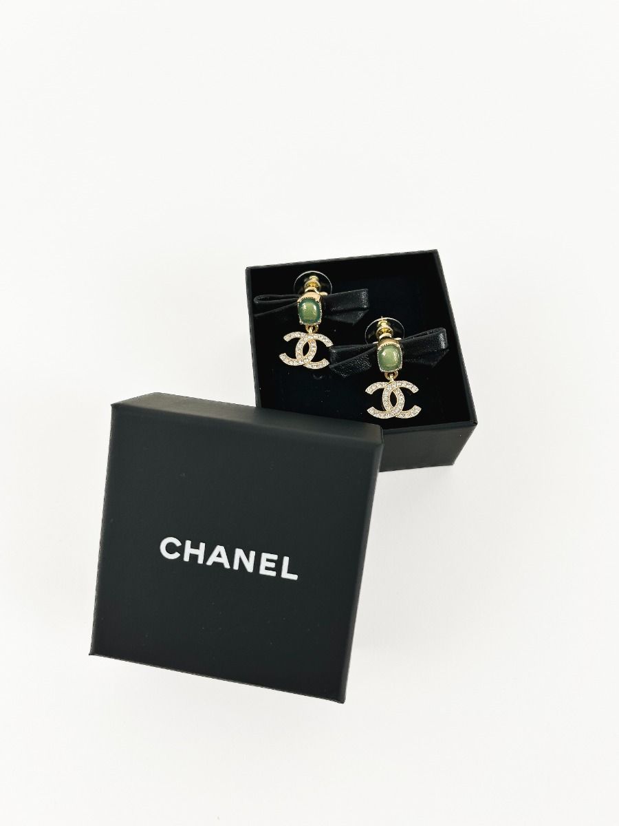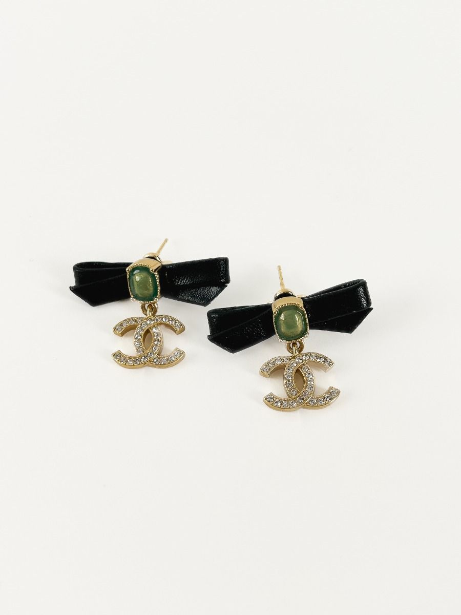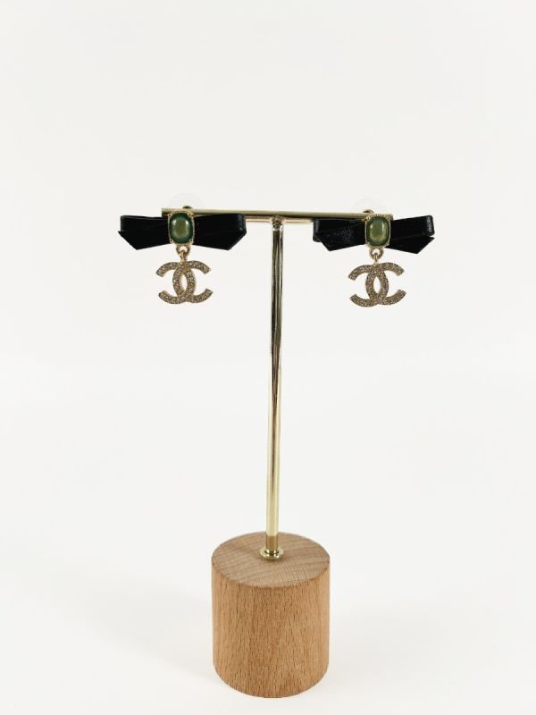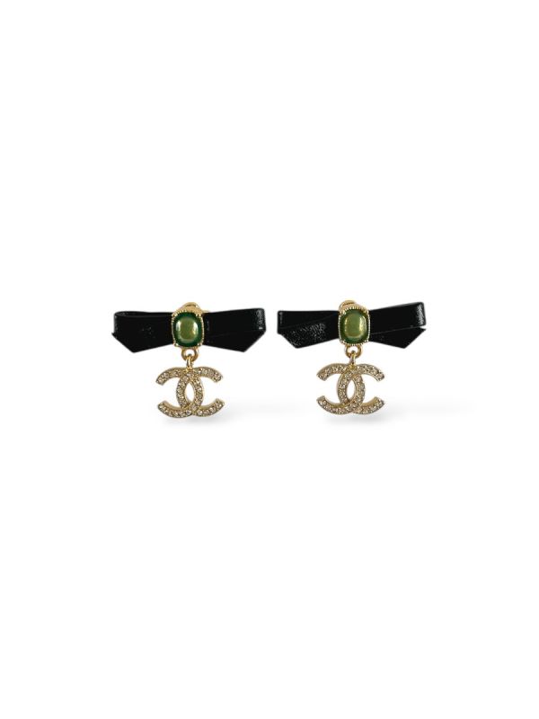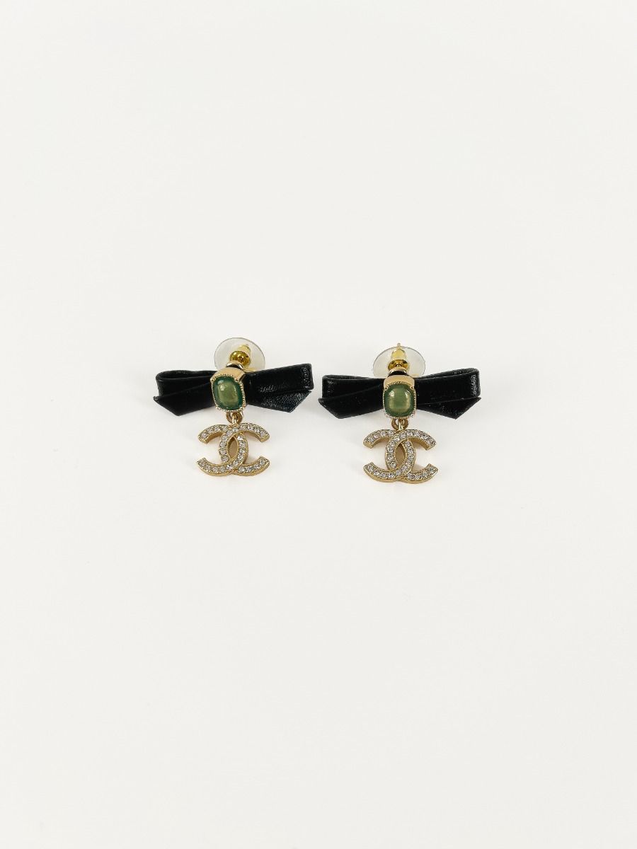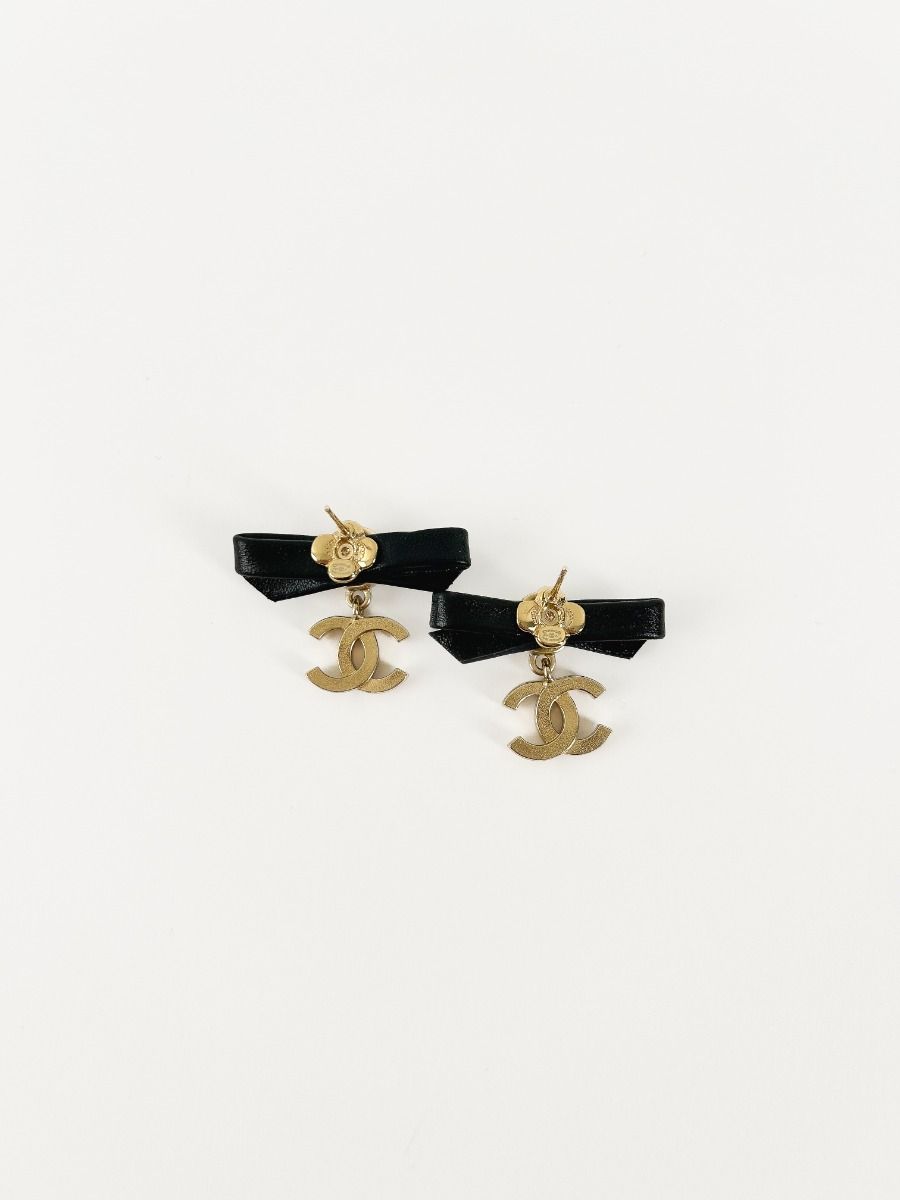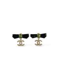 Boucles Chanel CC Strass & Détail Noeud Cuir Noir