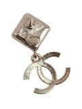 Boucles d’oreilles pendantes Chanel au design iconique, sublimées par le double C pavé de cristaux et une pierre rosée élégante. Un bijou de luxe intemporel, symbole de raffinement et de sophistication.