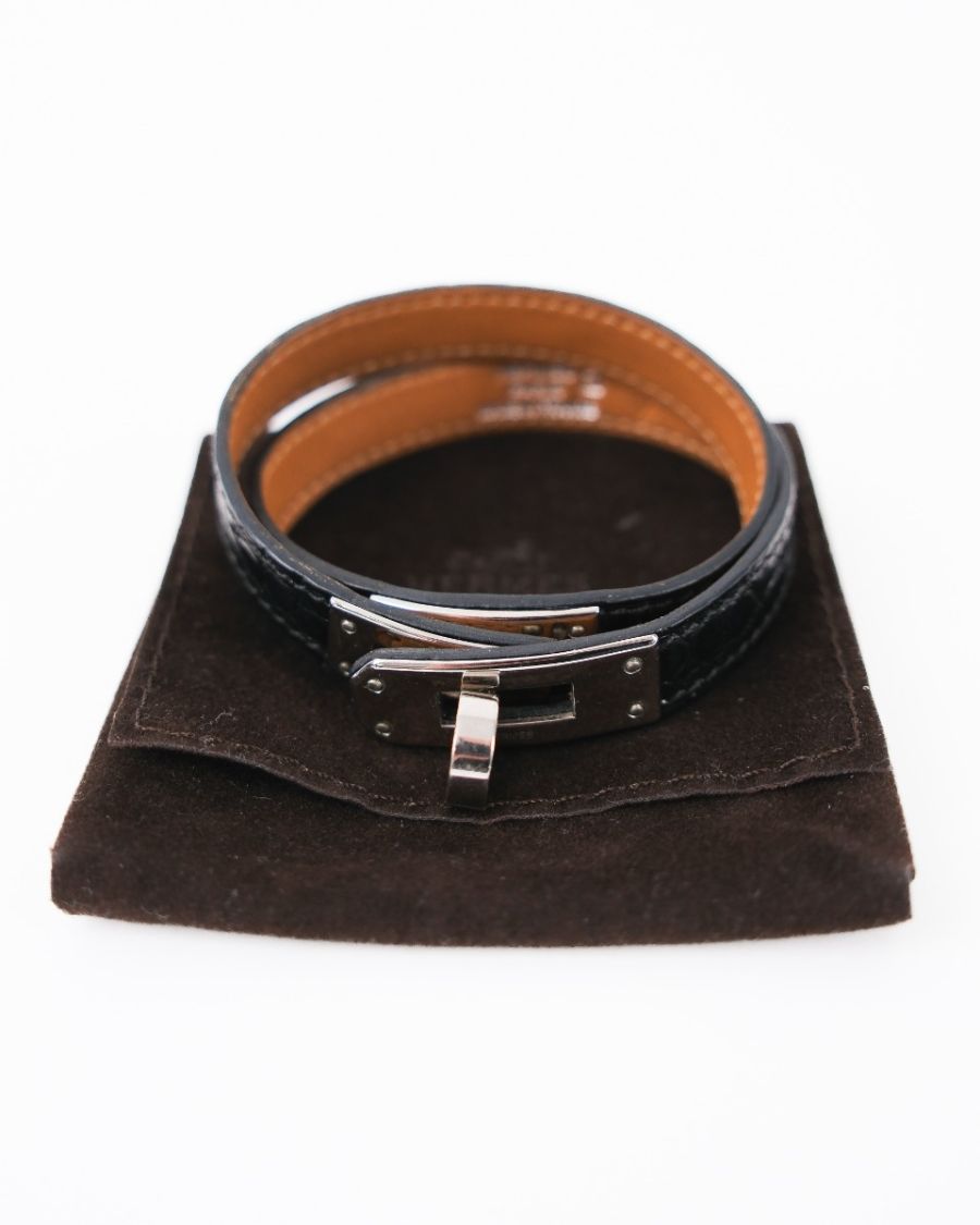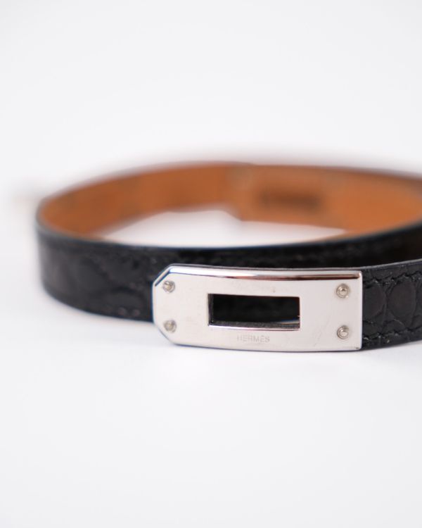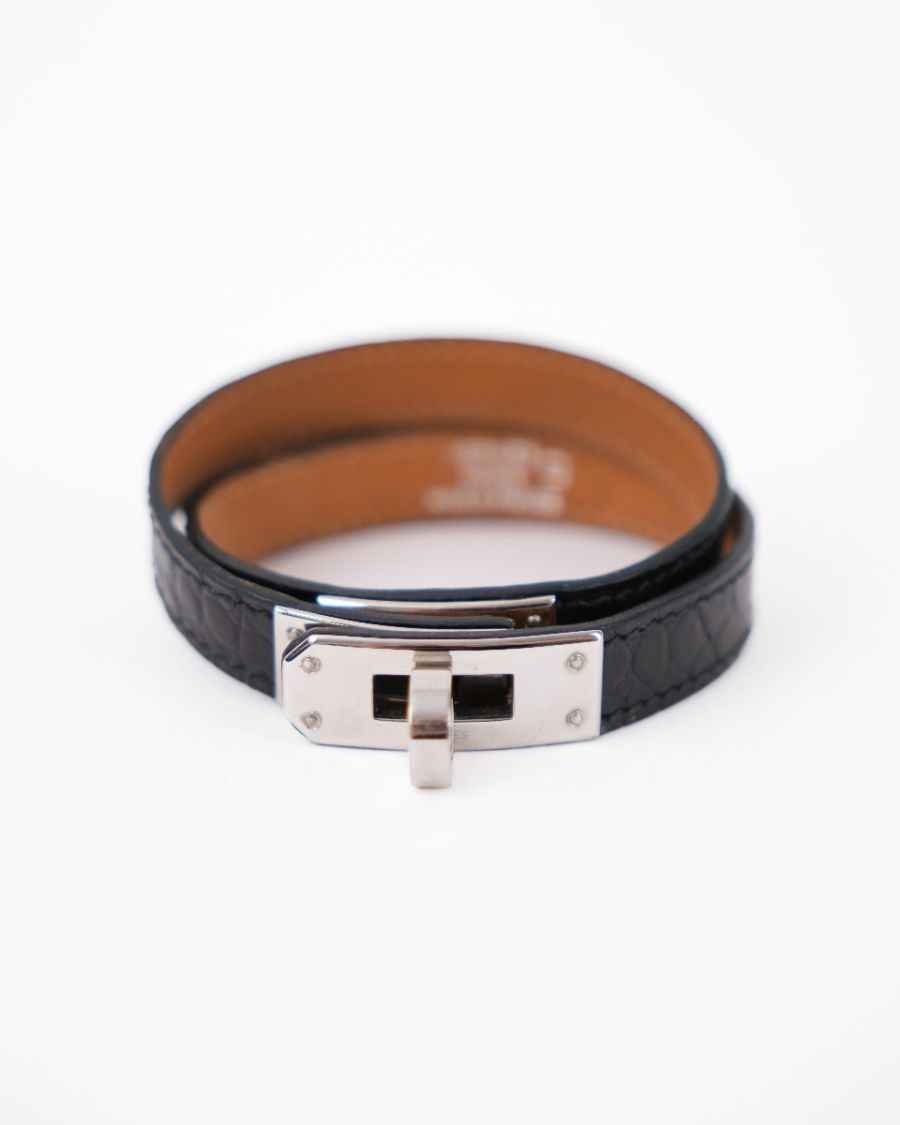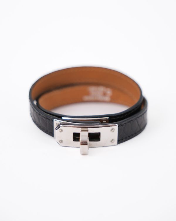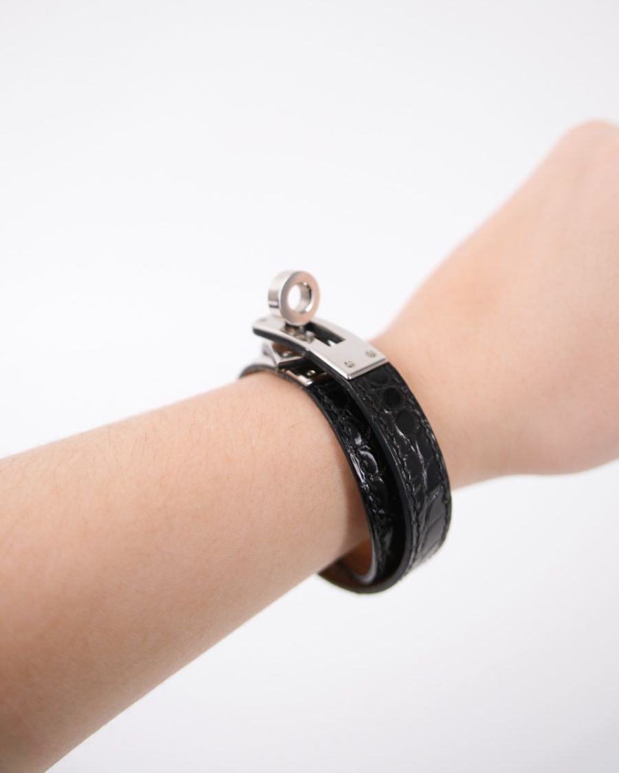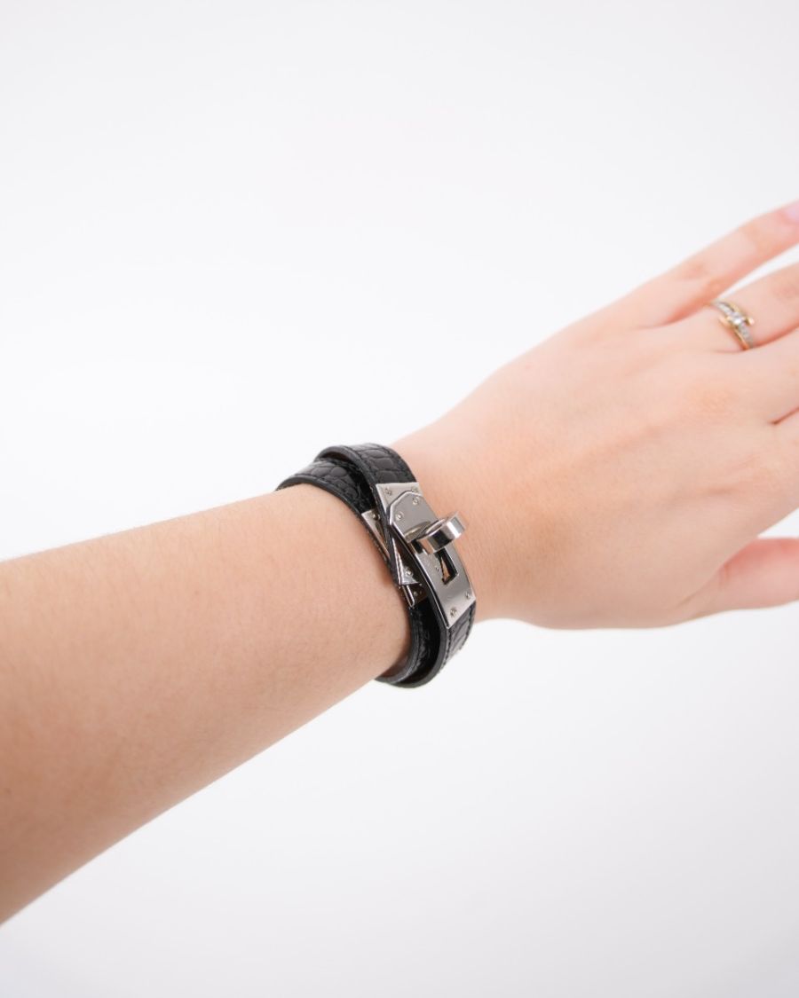 Bracelet Hermes Kelly Double Tour Alligator Lisse Noir Taille M