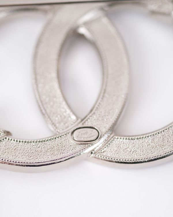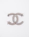 Cette broche Chanel se distingue par son iconique logo CC revisité, mêlant résine noire, strass scintillants et détails étoilés. À la fois moderne et élégante, elle apporte une touche lumineuse et originale à toutes vos tenues.