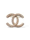 Cette broche Chanel iconique en métal doré met en scène le célèbre double C, délicatement orné de perles nacrées. Élégante et intemporelle, elle apporte une touche de raffinement à une veste, un manteau ou un foulard. Un bijou emblématique qui incarne parfaitement le chic et le savoir-faire de la Maison.