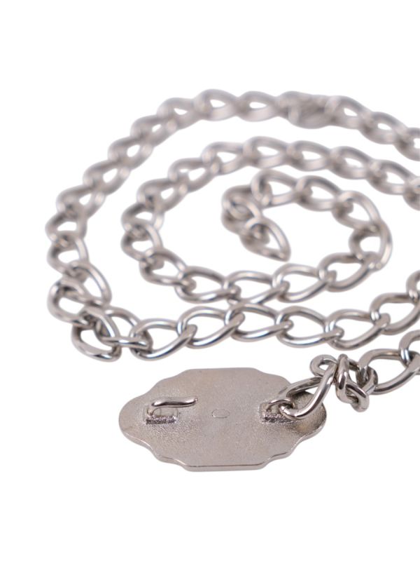 Ceinture chaîne signée Chanel, au design sophistiqué mêlant maillons noirs et métalliques, sublimée par une plaque centrale gravée du double C iconique. Élégante et audacieuse, cette pièce emblématique apporte une touche couture et contemporaine, idéale pour structurer une silhouette avec le raffinement intemporel de la Maison Chanel.