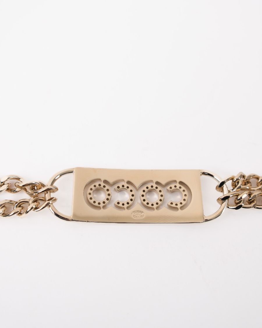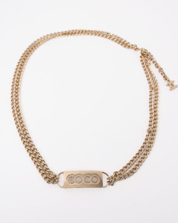 Ce collier Chanel en métal doré séduit par son design élégant composé d’une double chaîne et d’une plaque centrale ornée du logo COCO, signature emblématique de la maison. Moderne et raffiné, il apporte une touche de luxe subtile à toutes vos tenues. Un bijou intemporel Chanel, parfait pour sublimer un look chic au quotidien ou en soirée.