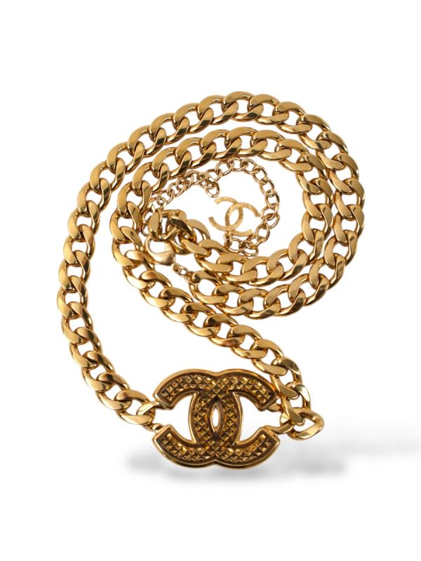 Cette ceinture Chanel dorée séduit par sa chaîne gourmette iconique sublimée par le célèbre logo CC finement ciselé. Élégante et intemporelle, elle apporte une touche couture à une tenue, portée à la taille ou sur les hanches. Un accessoire emblématique au charme vintage, idéal pour rehausser un look avec caractère et raffinement.