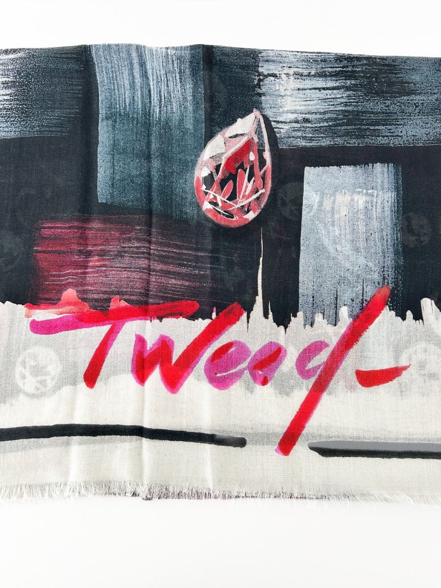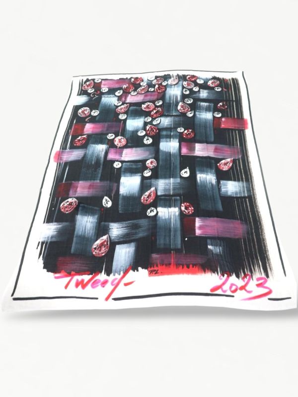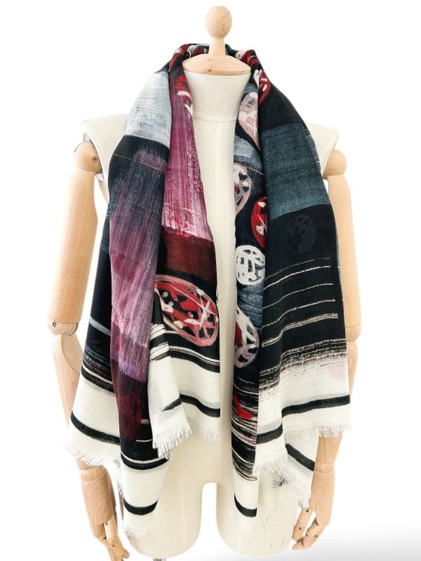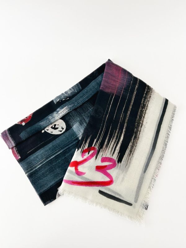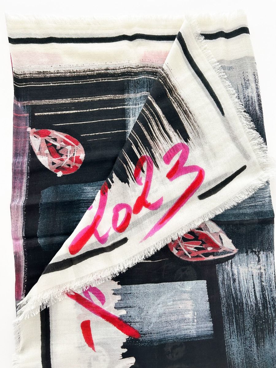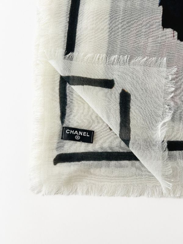 Écharpe Chanel en cachemire, au design artistique et raffiné. Sa matière luxueuse, douce et légère offre un confort incomparable tout en apportant une touche de sophistication à votre tenue. Un accessoire iconique, symbole du savoir-faire Chanel.