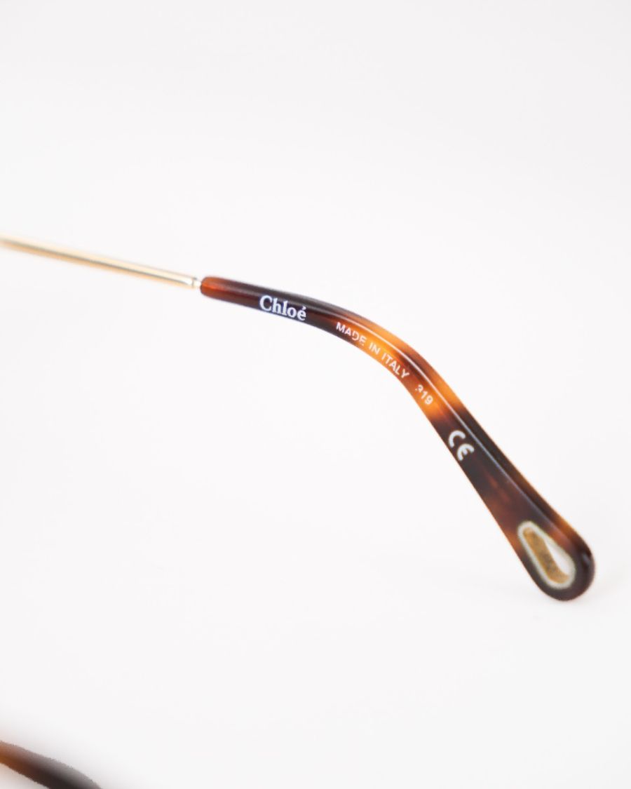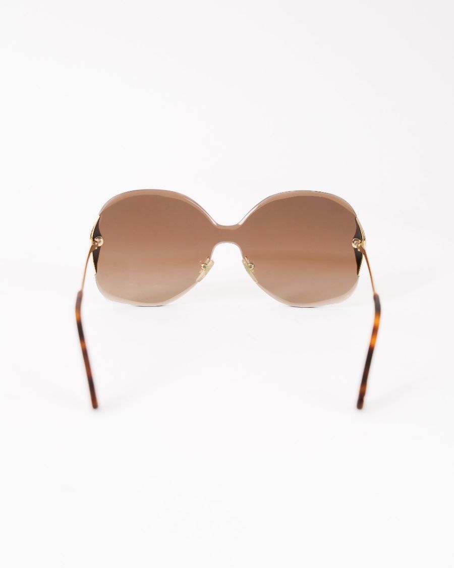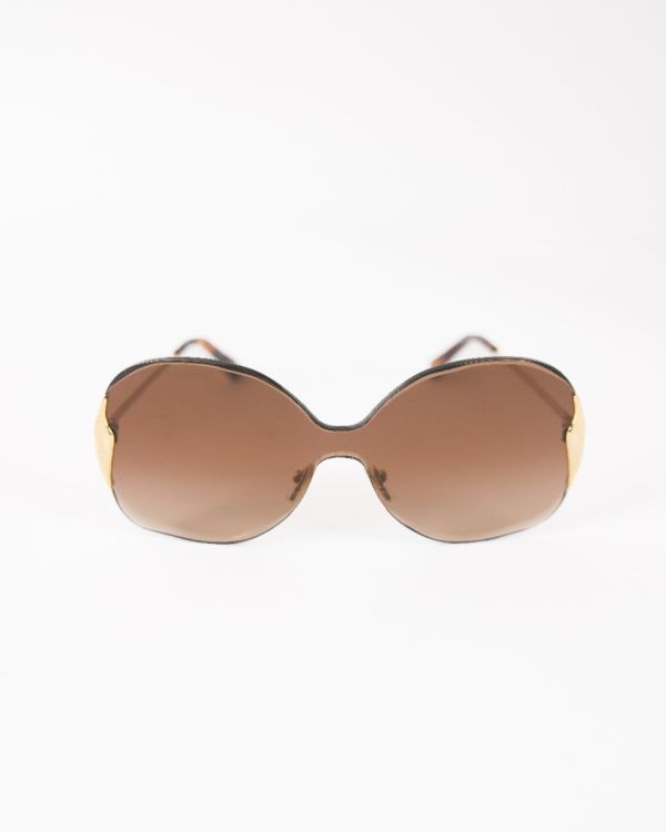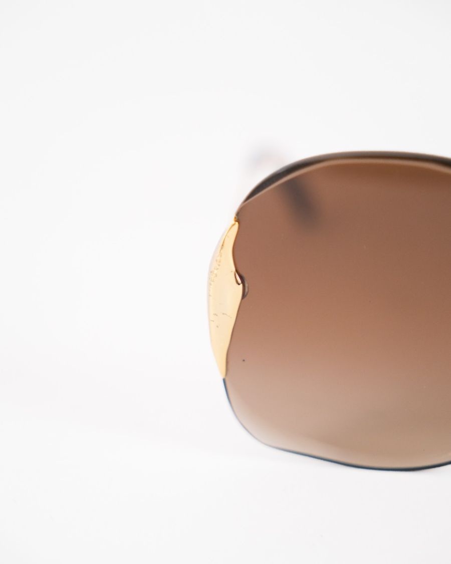 Lunettes de soleil Chloé au design oversize, dotées de verres teintés marron et d’une monture élégamment travaillée avec détails métalliques dorés. Féminines et sophistiquées, elles offrent une allure glamour tout en assurant une protection solaire optimale. Un accessoire chic et intemporel, signature de la Maison Chloé.