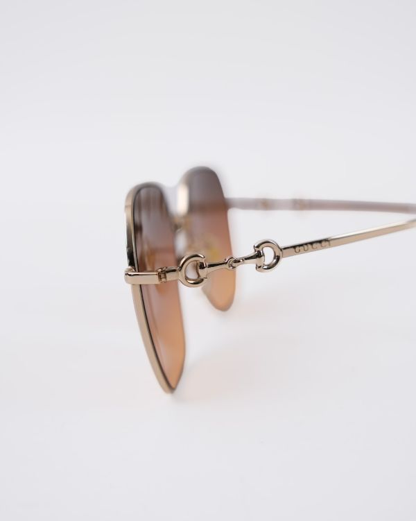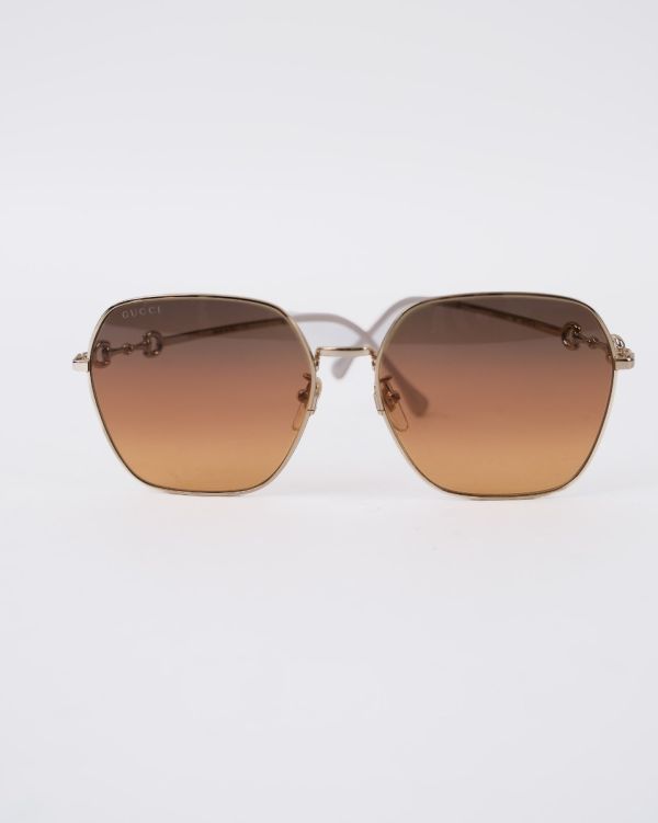 Ces lunettes de soleil Gucci séduisent par leur monture fine en métal doré et leurs verres dégradés aux teintes chaudes, offrant un style à la fois élégant et intemporel. Le détail iconique Horsebit sur les branches rappelle l’héritage emblématique de la maison Gucci. Un accessoire chic et raffiné, parfait pour sublimer toutes vos tenues avec une touche de luxe.