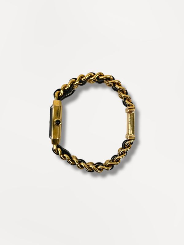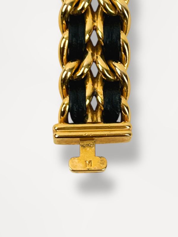 Montre Chanel Première M En Plaqué Or Entrelacée De Cuir Noir
