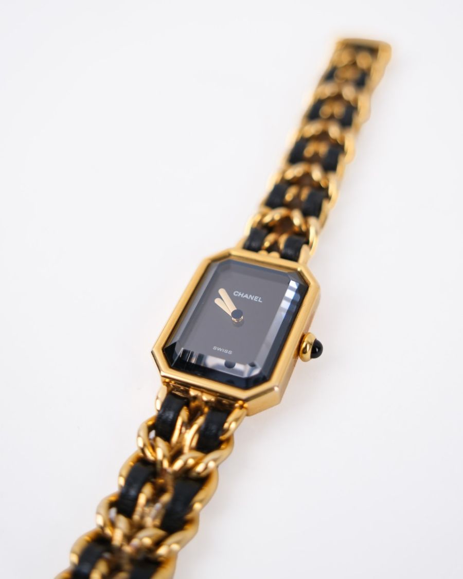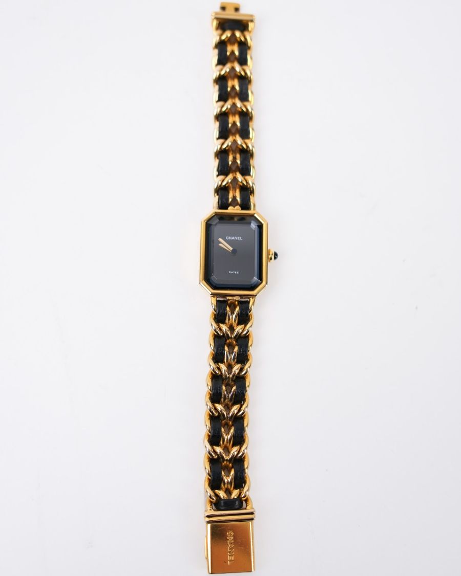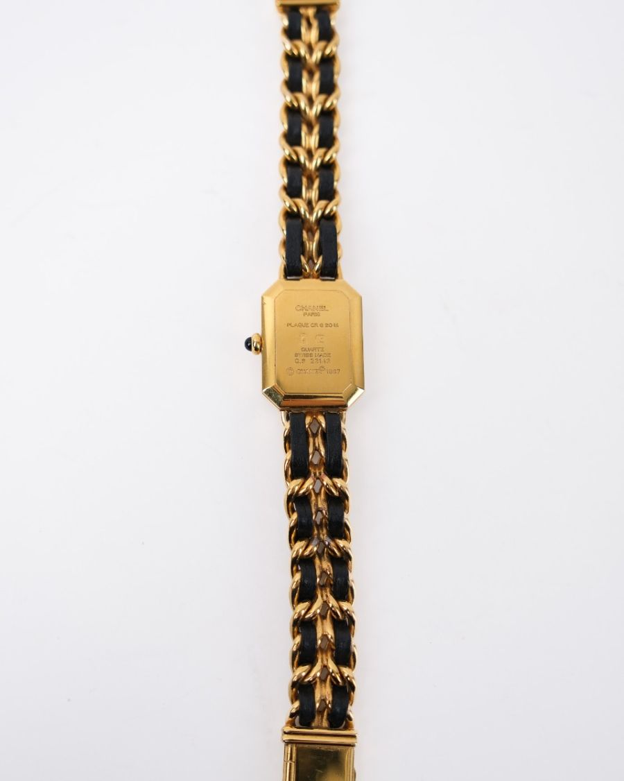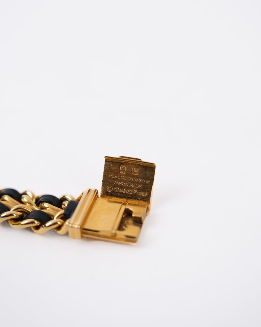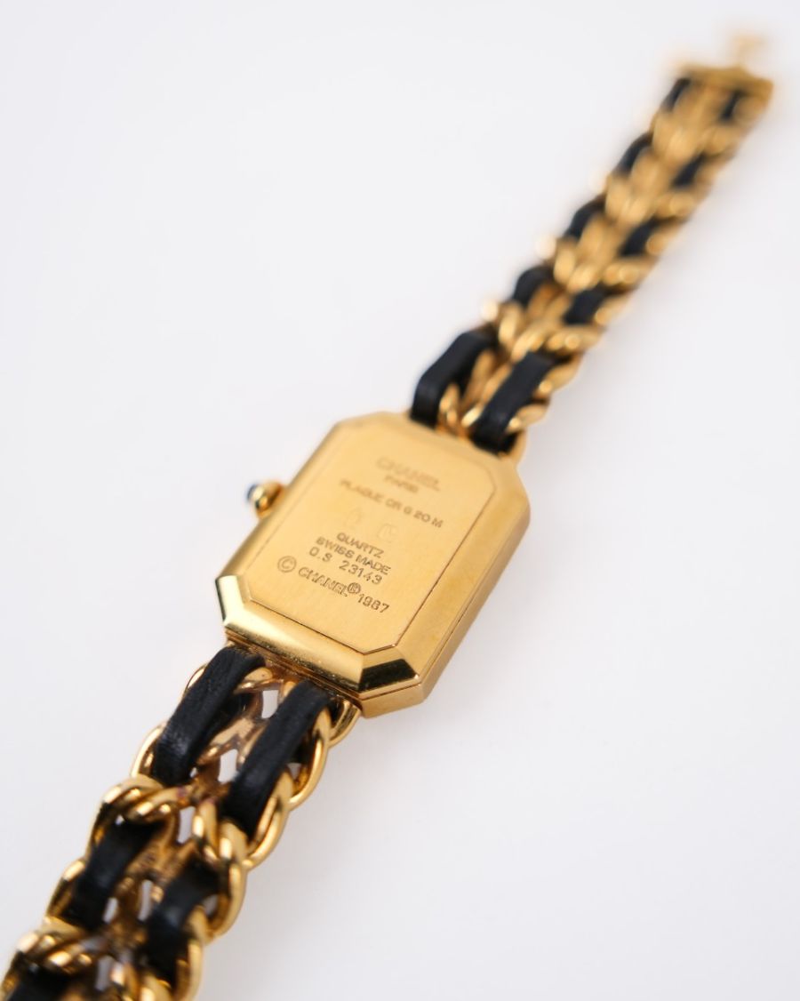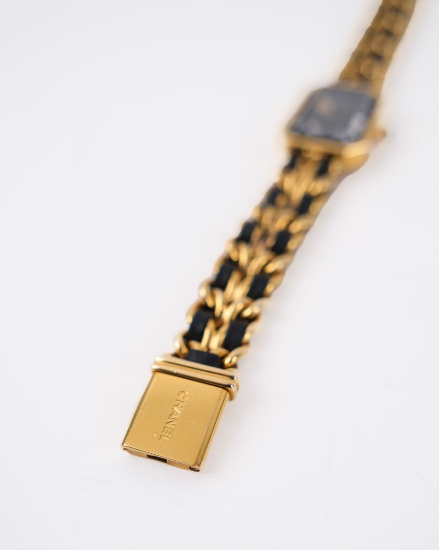 Montre Chanel Première L En Plaqué Or Entrelacée De Cuir Noir