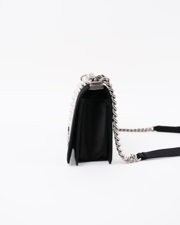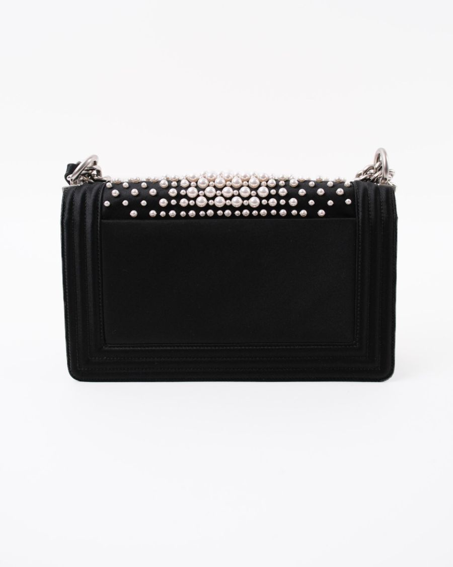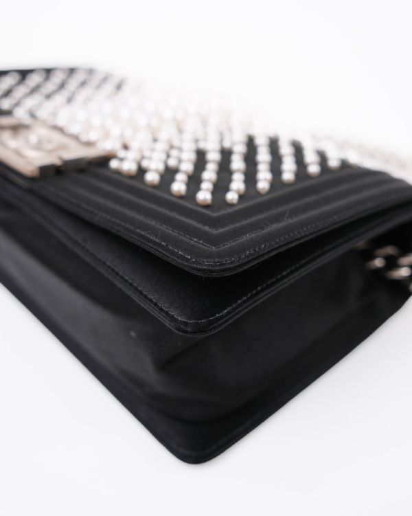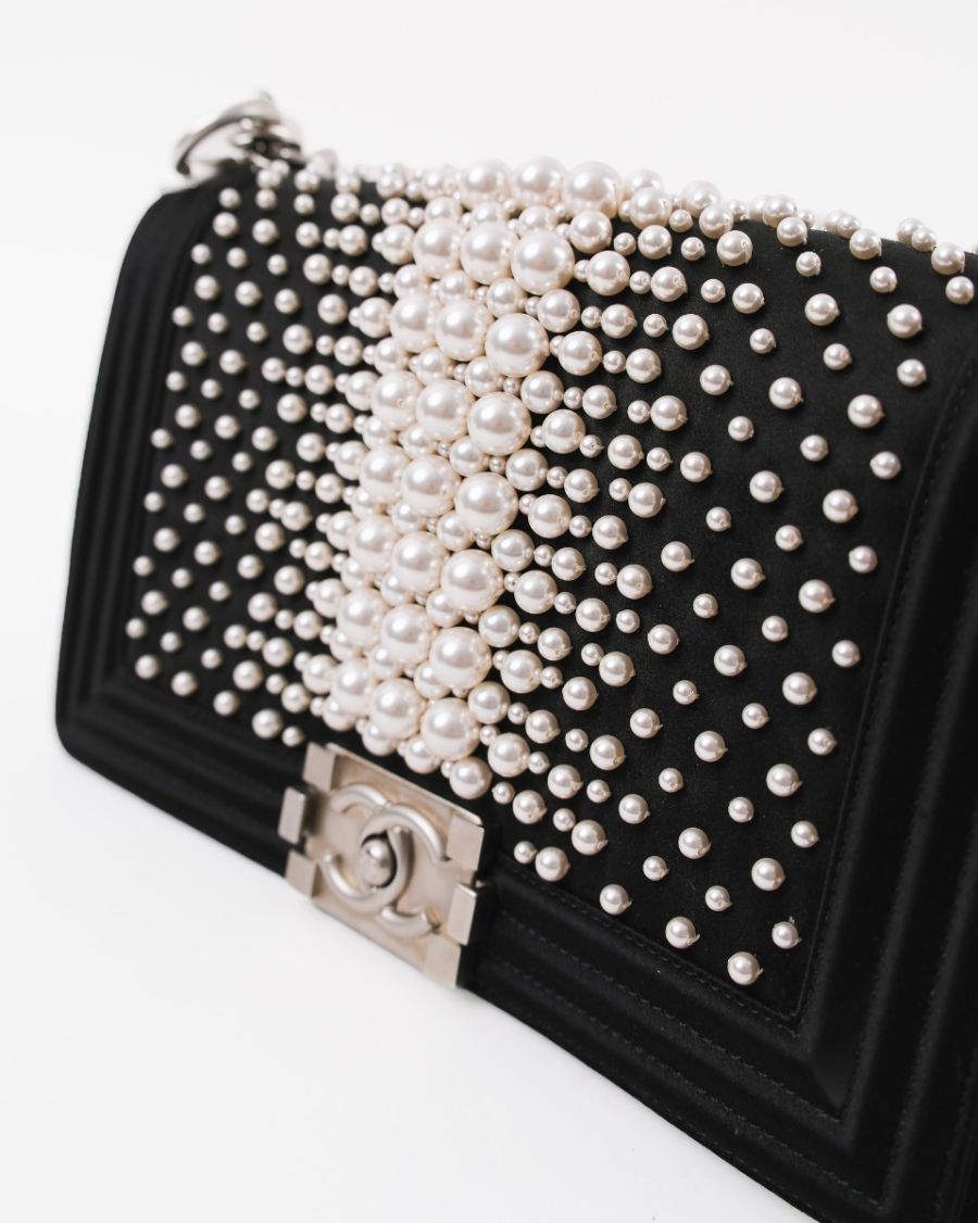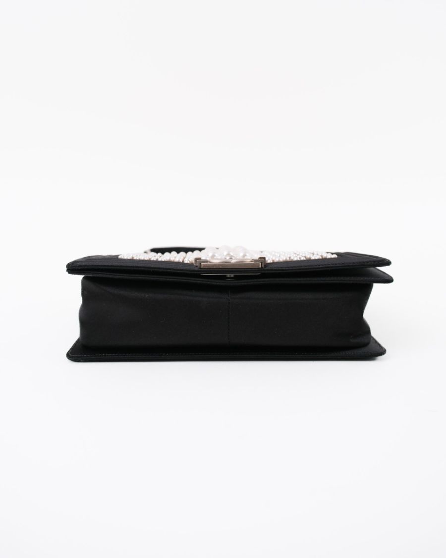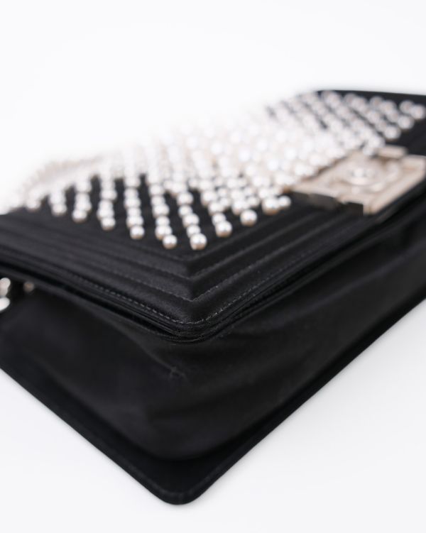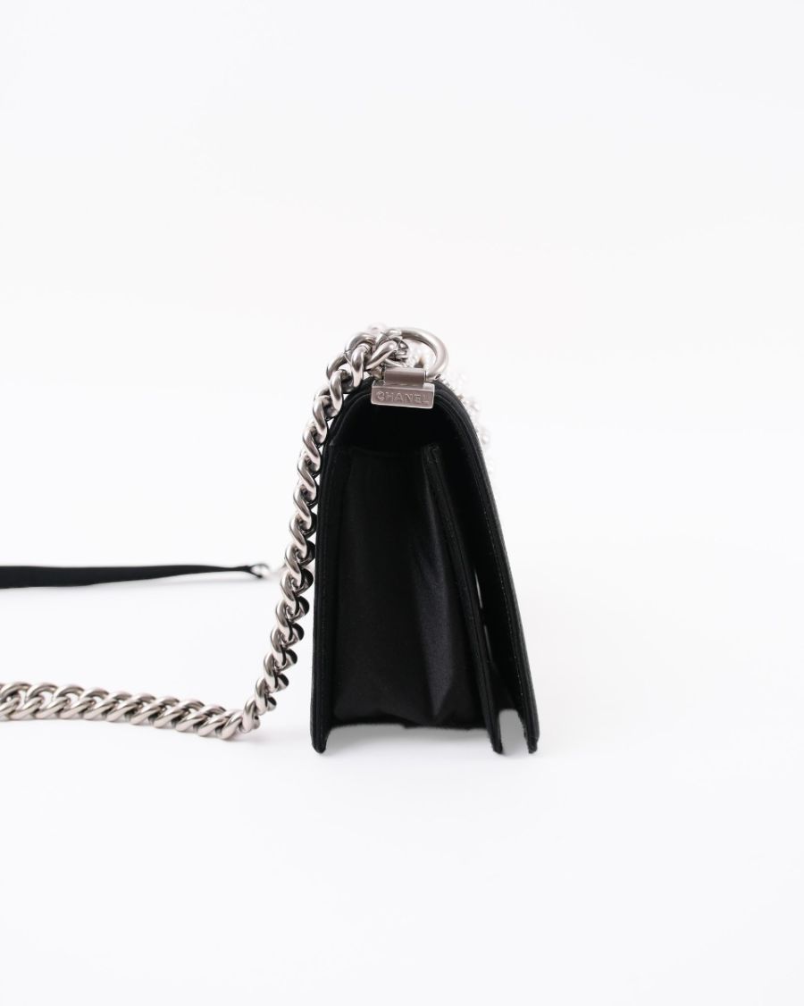 Sac à Bandoulière Chanel Boy En Satin Noir et Perles