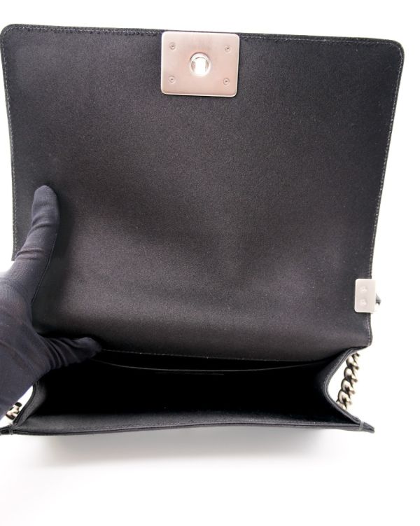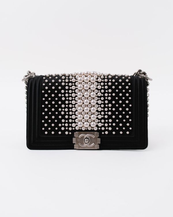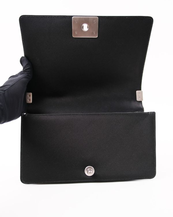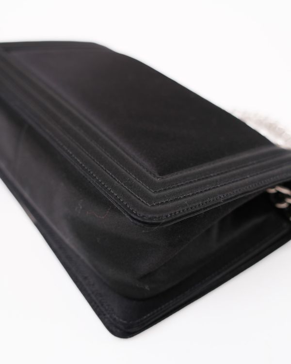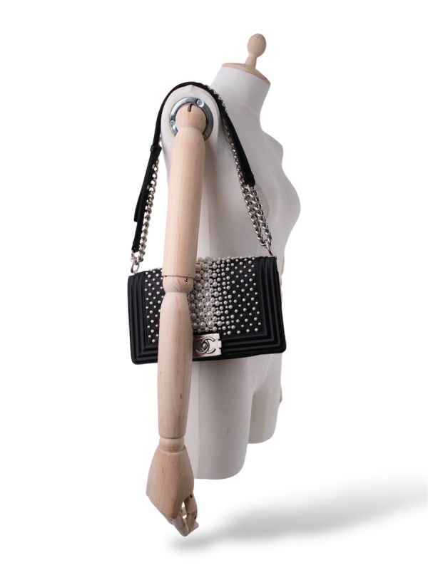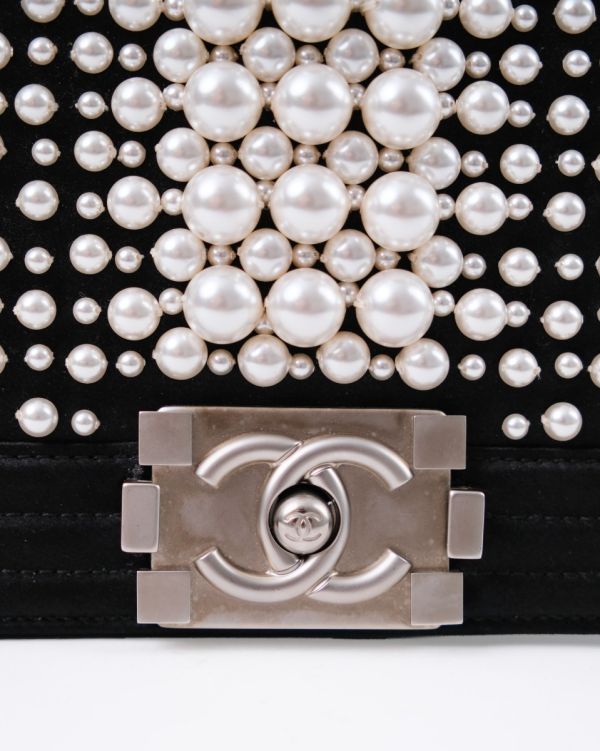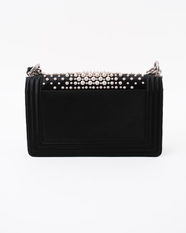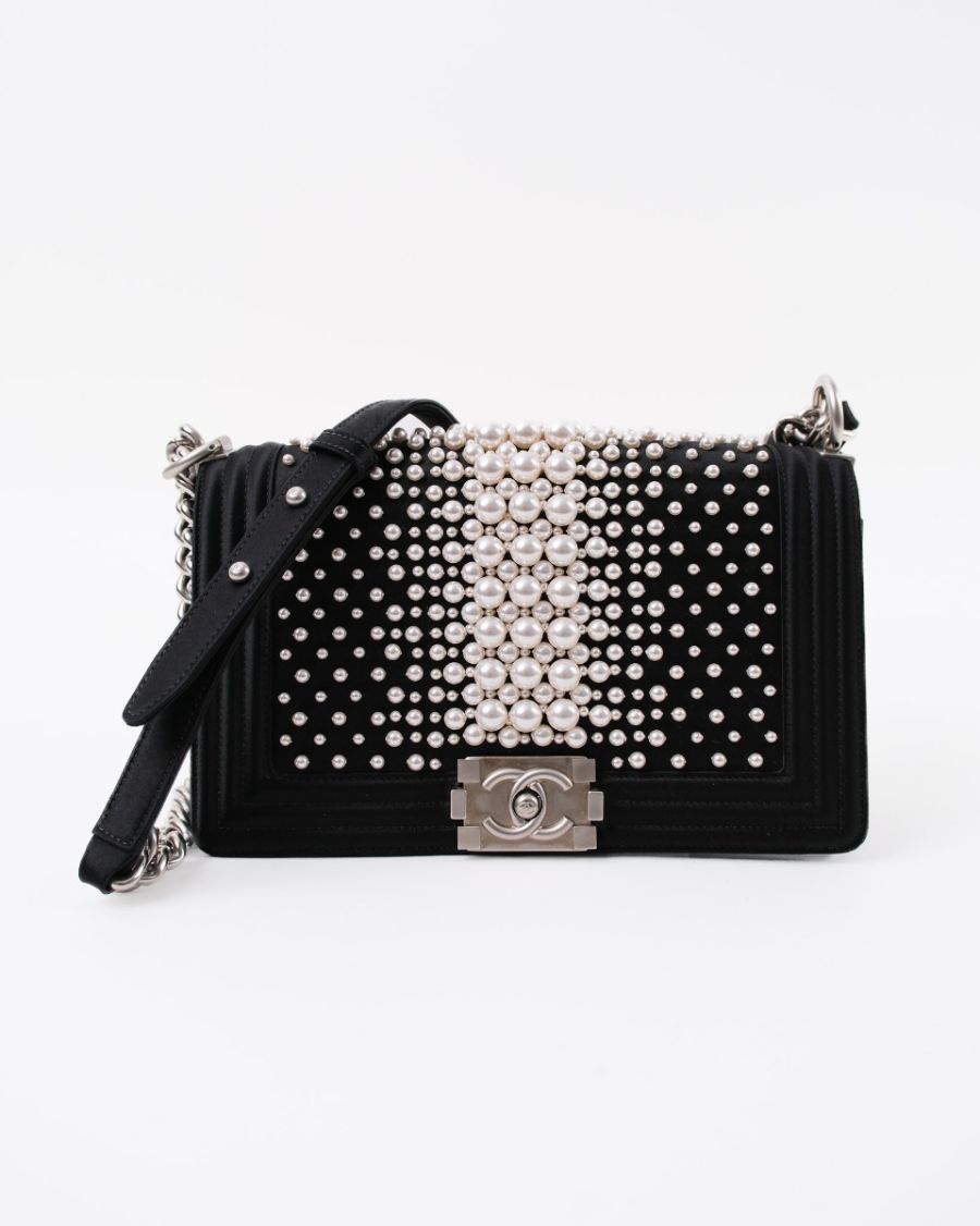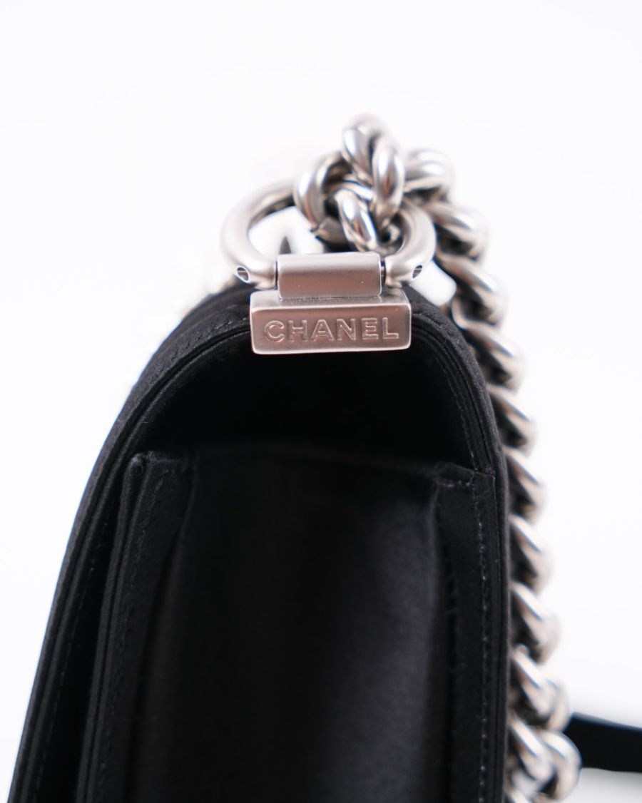 Sac à Bandoulière Chanel Boy En Satin Noir et Perles