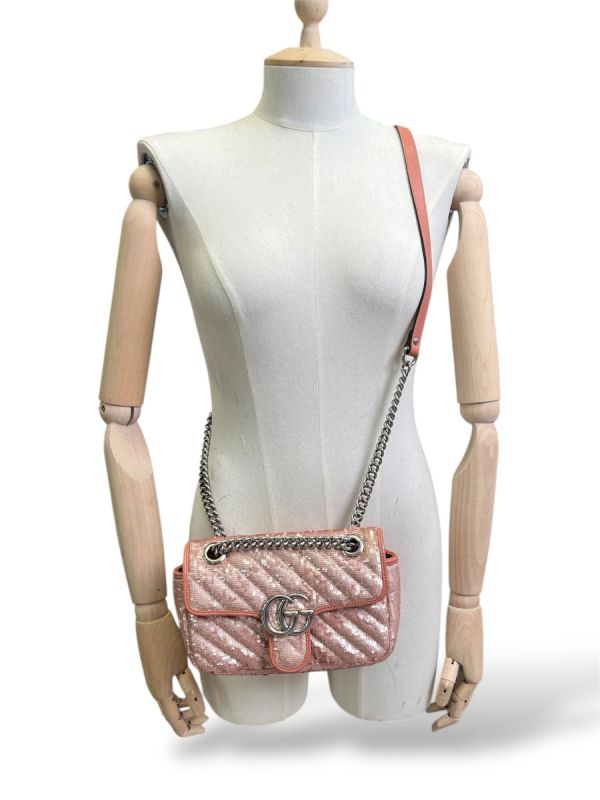 Sac à bandoulière Gucci à Paillettes Marmont Rose
