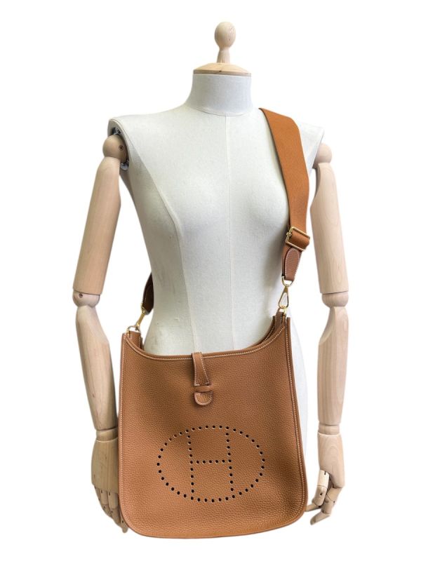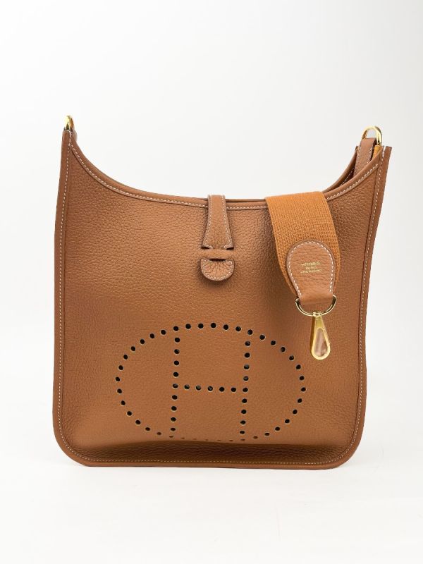Sac à Bandoulière Hermès Evelyne III 29 En Cuir Doré