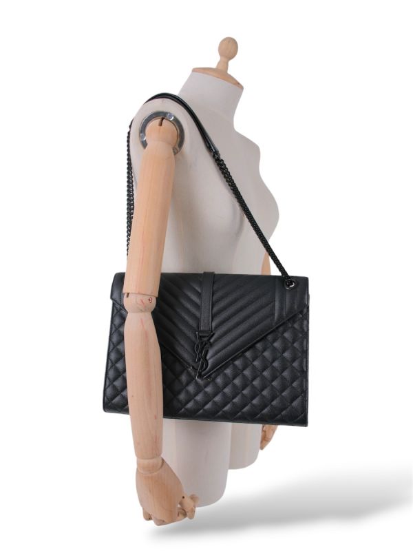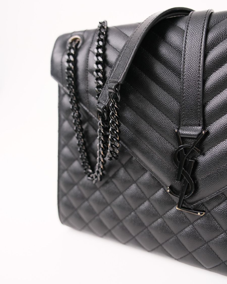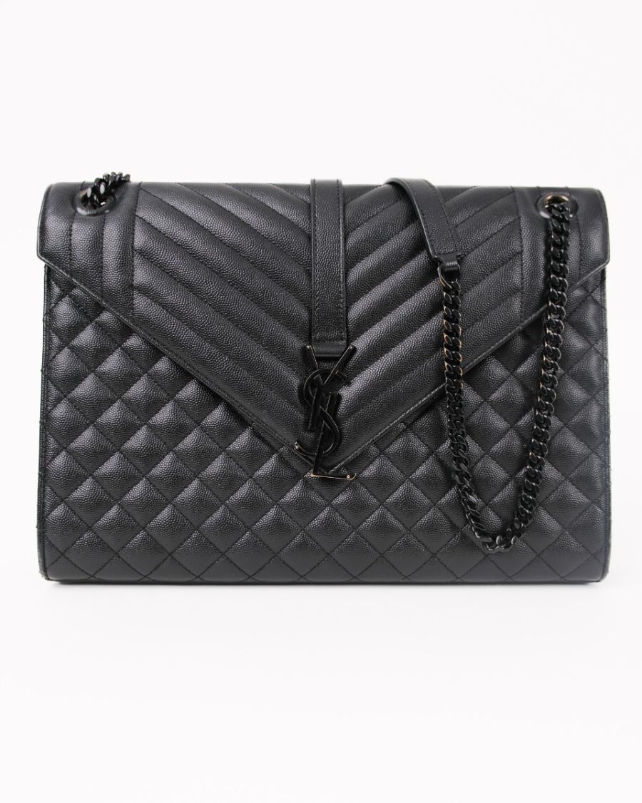 Sac à Bandoulière Saint Laurent Enveloppe Full Black En Cuir Grainé