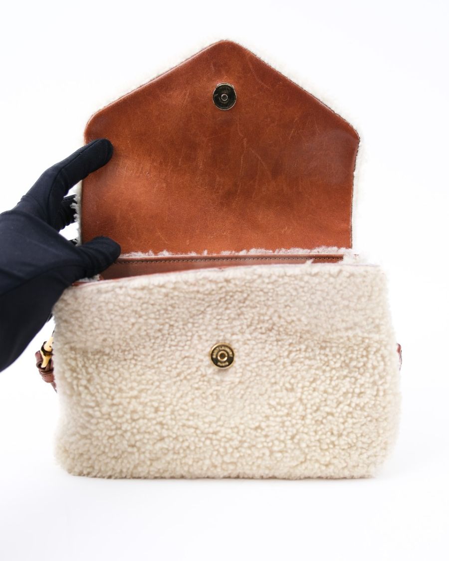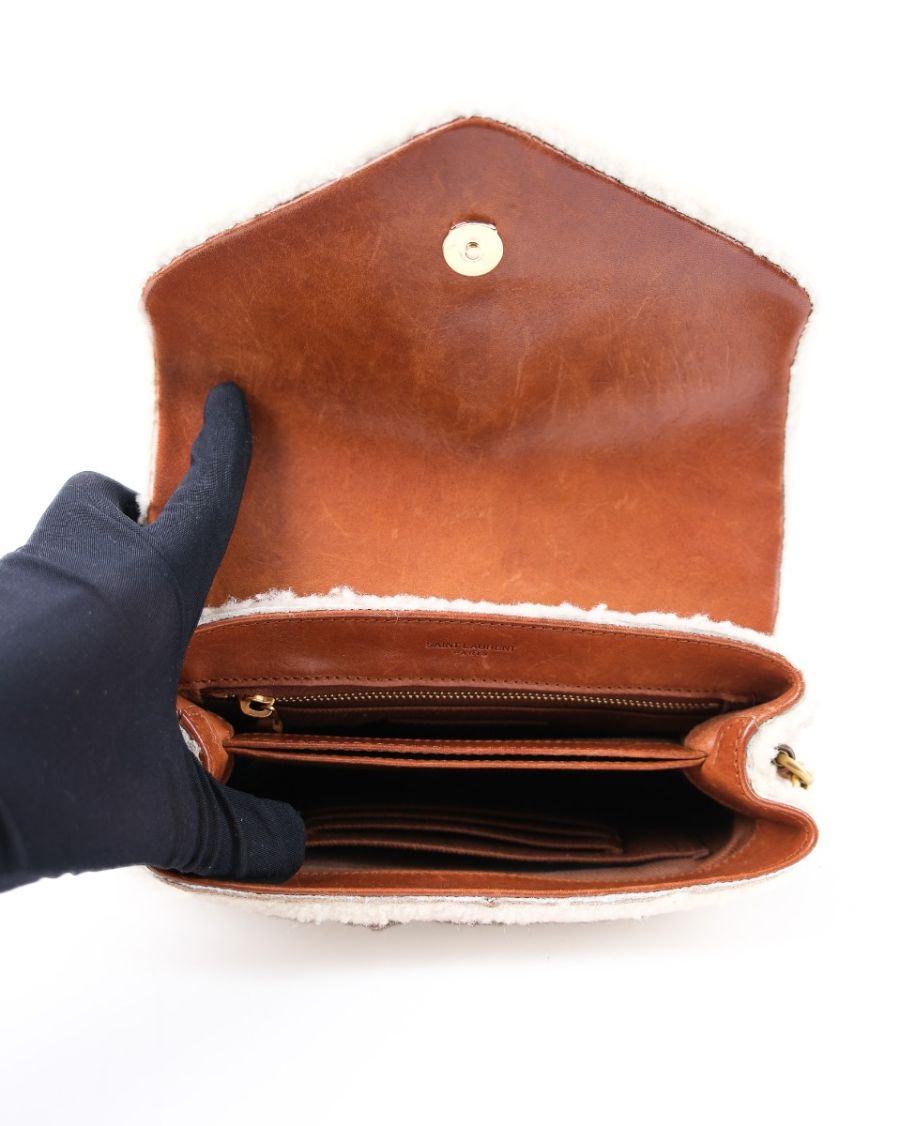 Sac Bandoulière Saint Laurent Enveloppe en Cuir Matelassé Chevrons Blanc Cassé