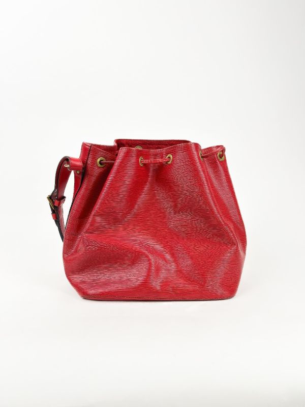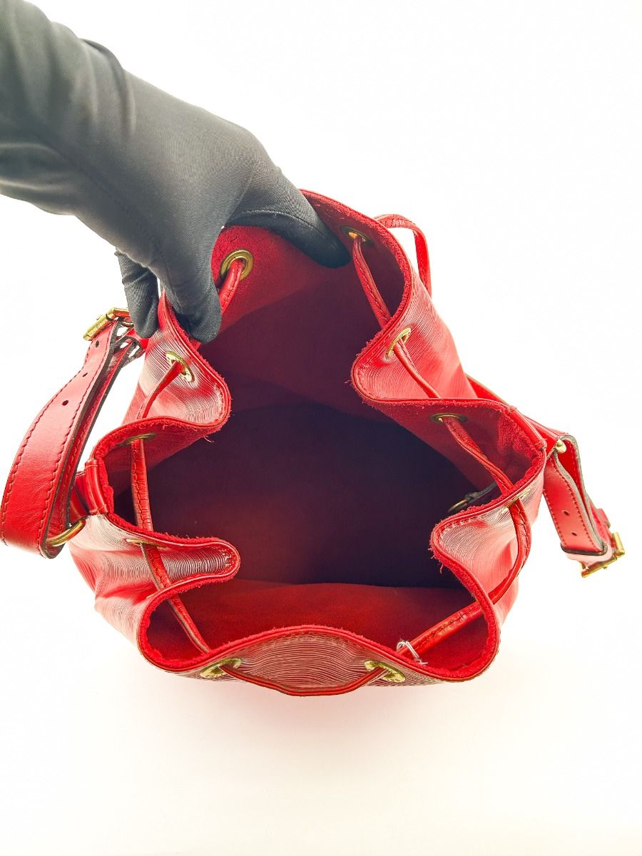 Élégant et intemporel, ce sac seau en cuir Épi rouge séduit par sa texture raffinée et sa silhouette souple. Son cordon de serrage et sa bandoulière ajustable en font un compagnon à la fois pratique et sophistiqué pour toutes les occasions.