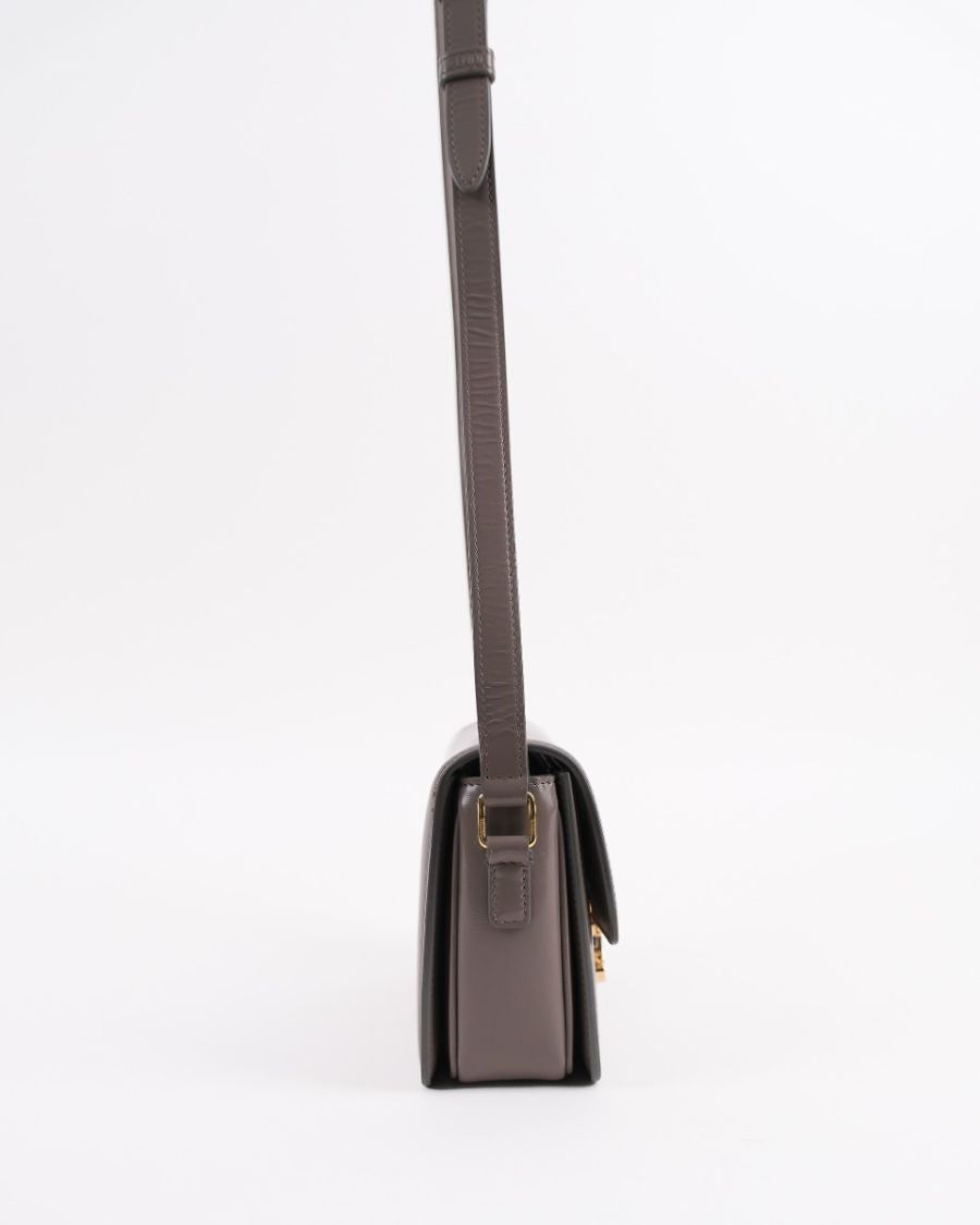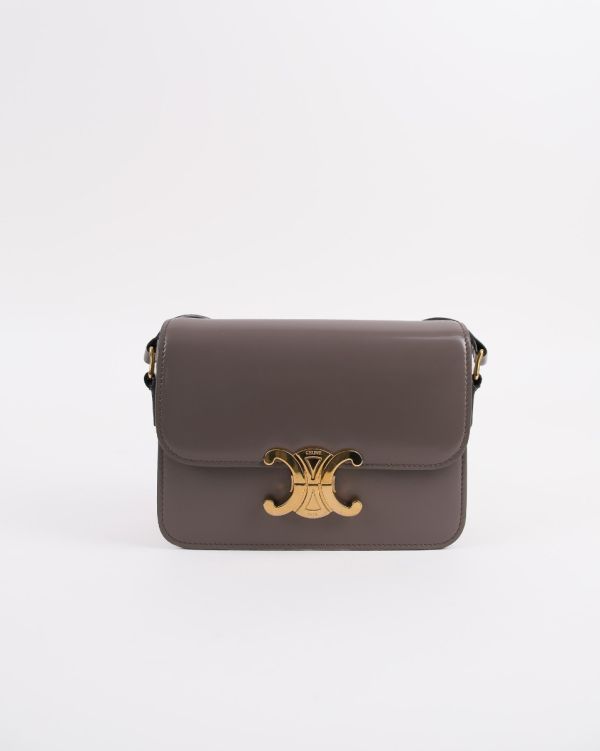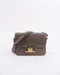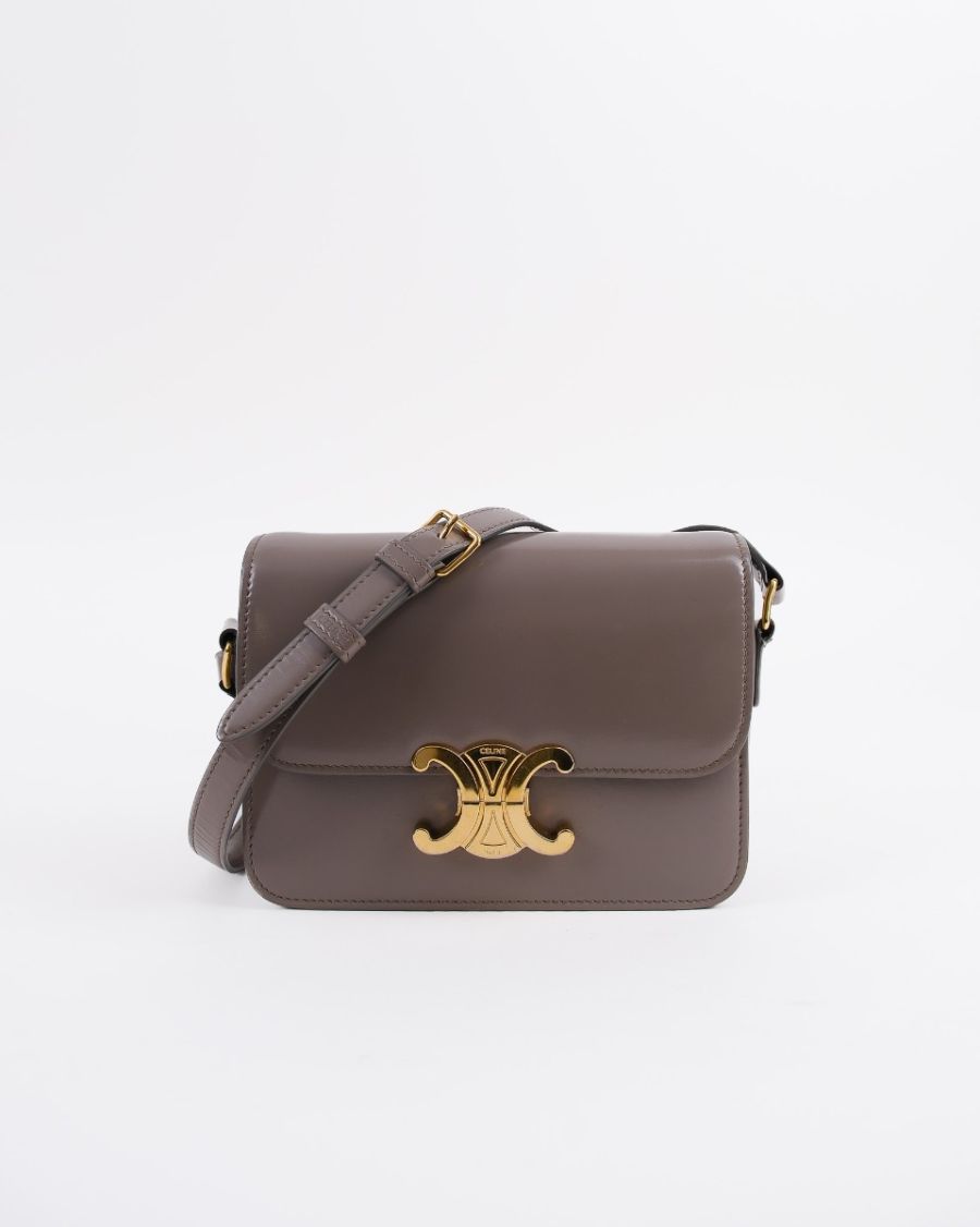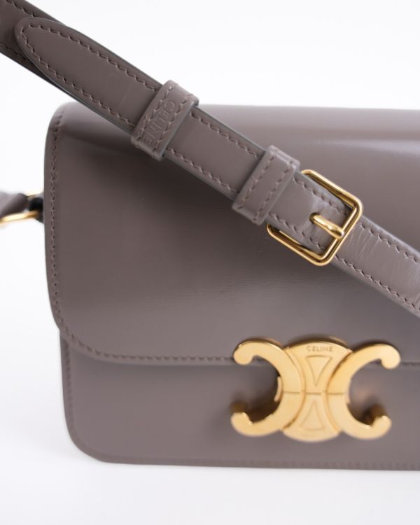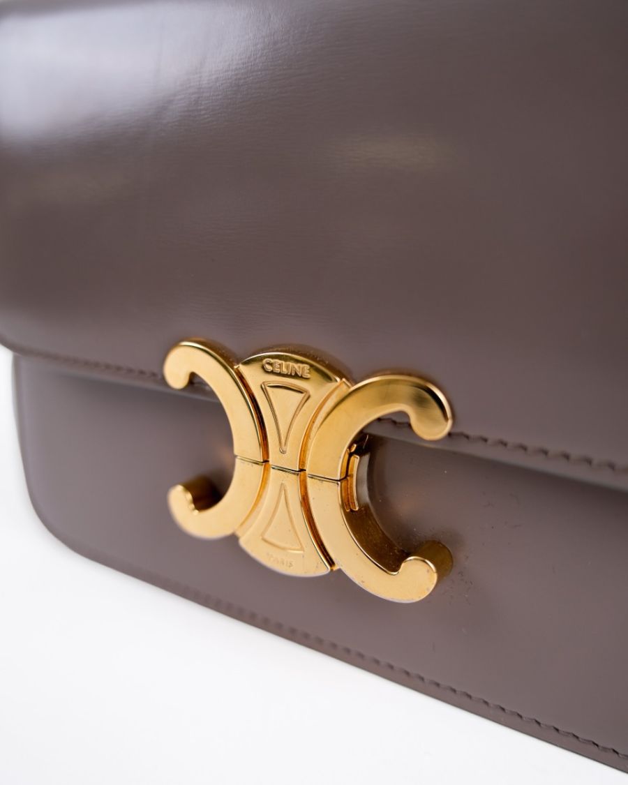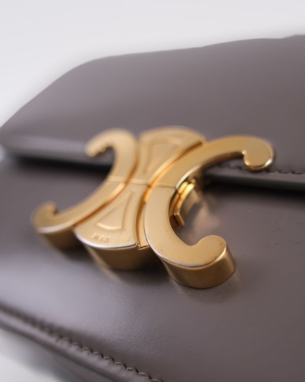 Élégant et intemporel, ce sac à main Céline Triomphe en cuir de vachette gris uni séduit par ses lignes épurées et son iconique fermoir Triomphe doré. Confectionné dans un cuir lisse de haute qualité, il incarne le savoir-faire de la maison et apporte une touche chic et moderne à toutes vos tenues. Un modèle de luxe incontournable, idéal pour un style raffiné au quotidien comme en soirée.