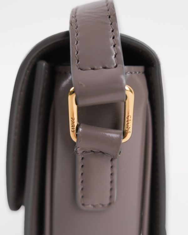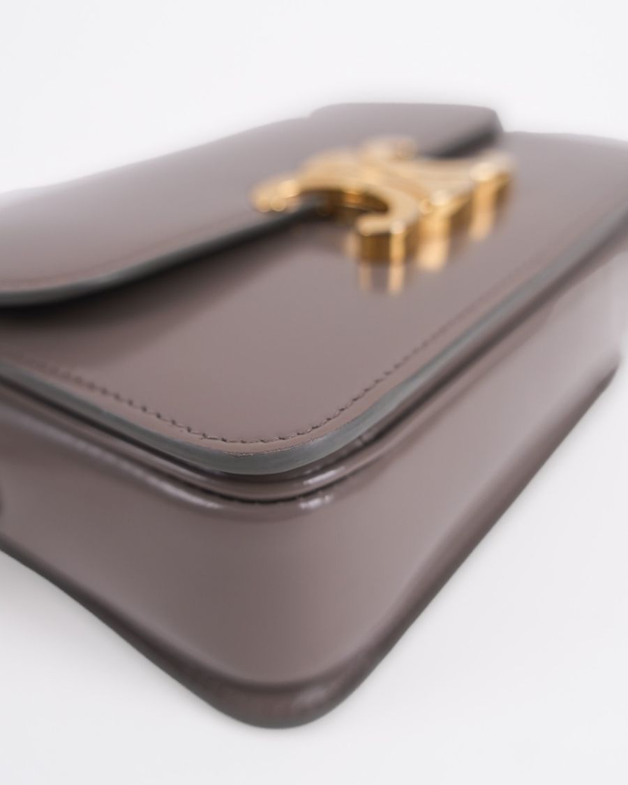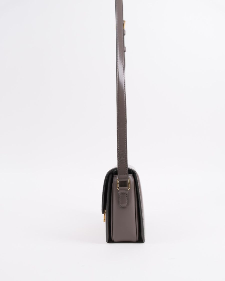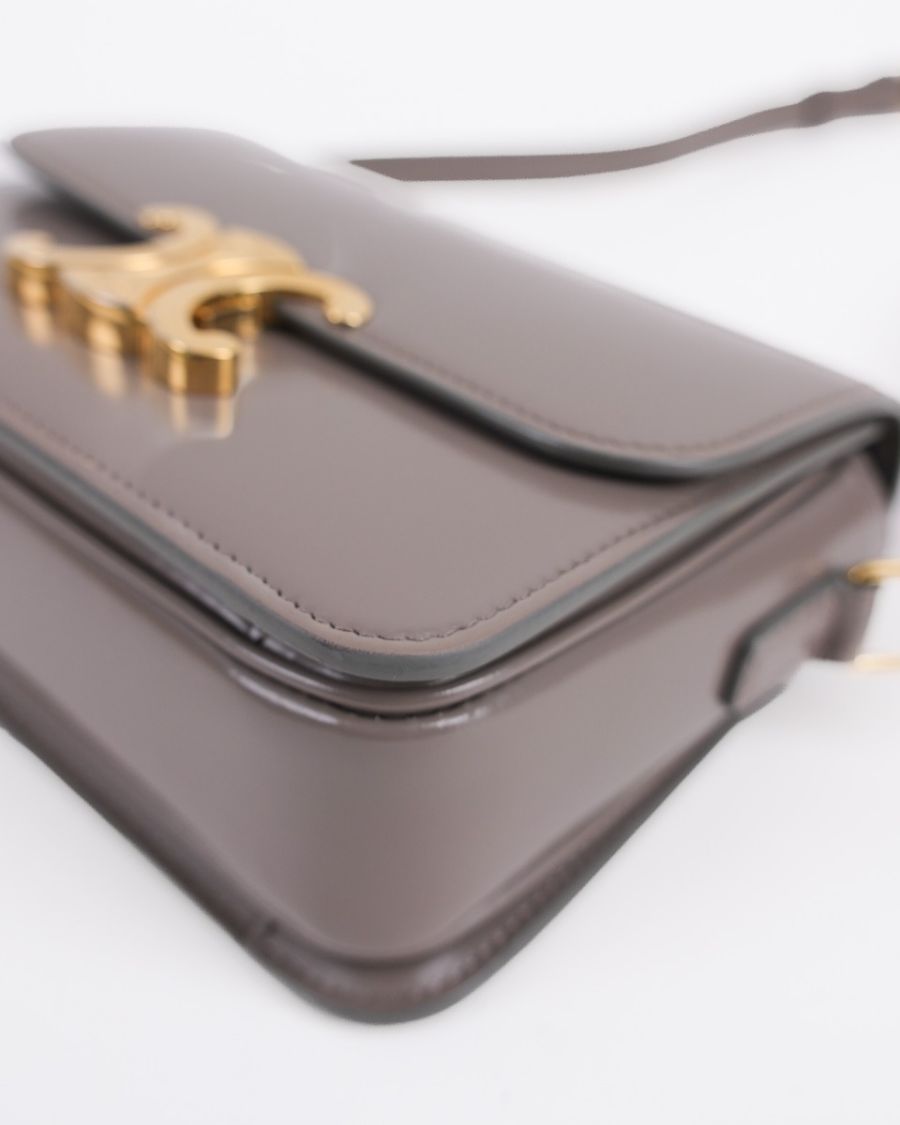Élégant et intemporel, ce sac à main Céline Triomphe en cuir de vachette gris uni séduit par ses lignes épurées et son iconique fermoir Triomphe doré. Confectionné dans un cuir lisse de haute qualité, il incarne le savoir-faire de la maison et apporte une touche chic et moderne à toutes vos tenues. Un modèle de luxe incontournable, idéal pour un style raffiné au quotidien comme en soirée.
