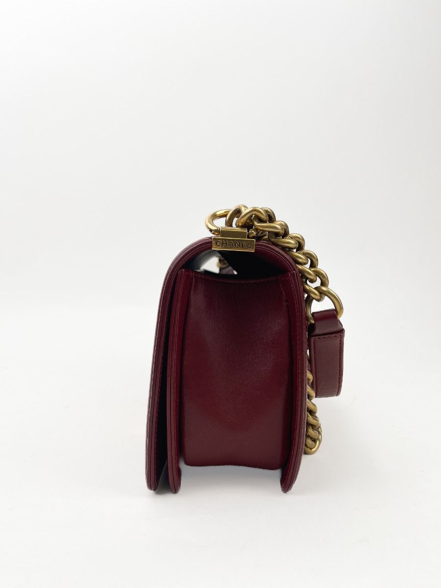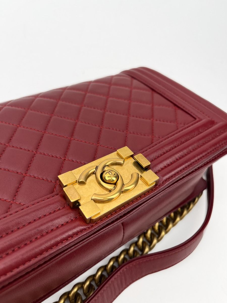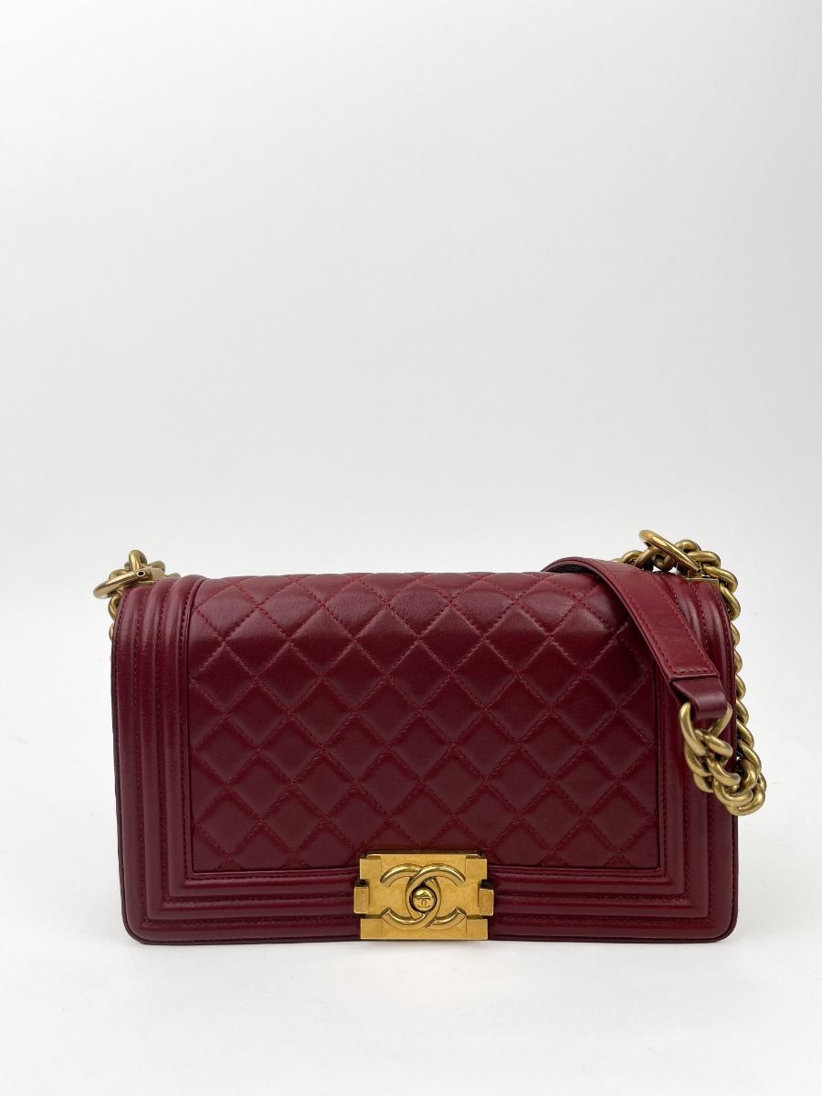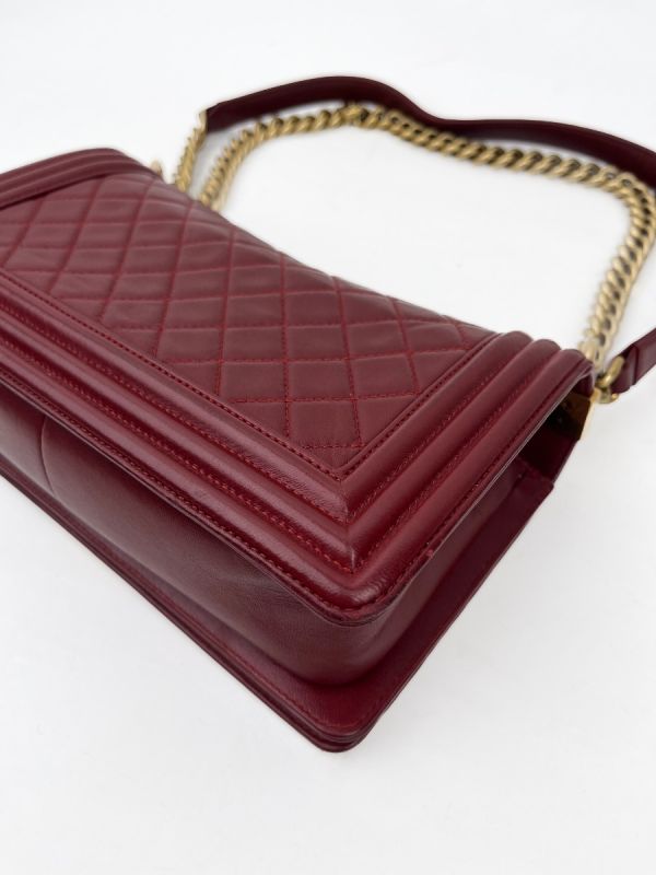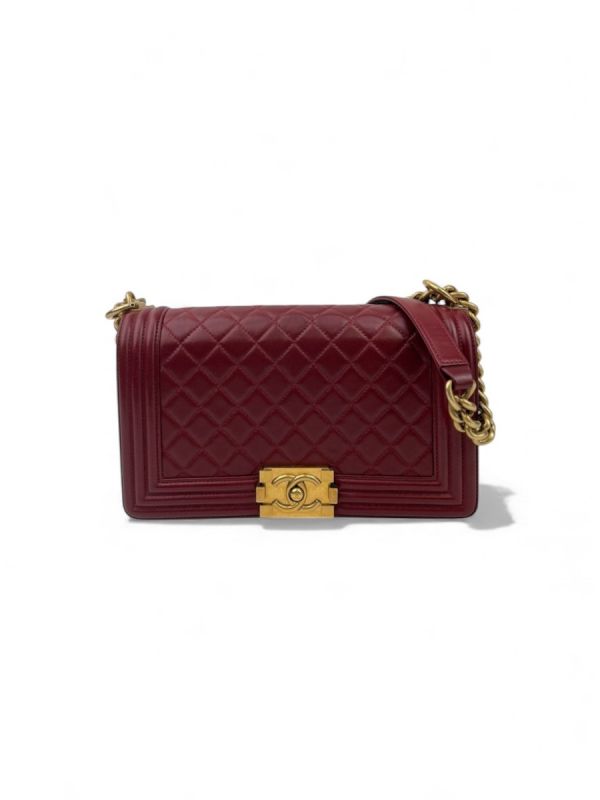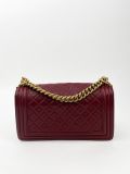 Sac à Main Chanel Boy en Cuir Matelassé Rouge Foncé