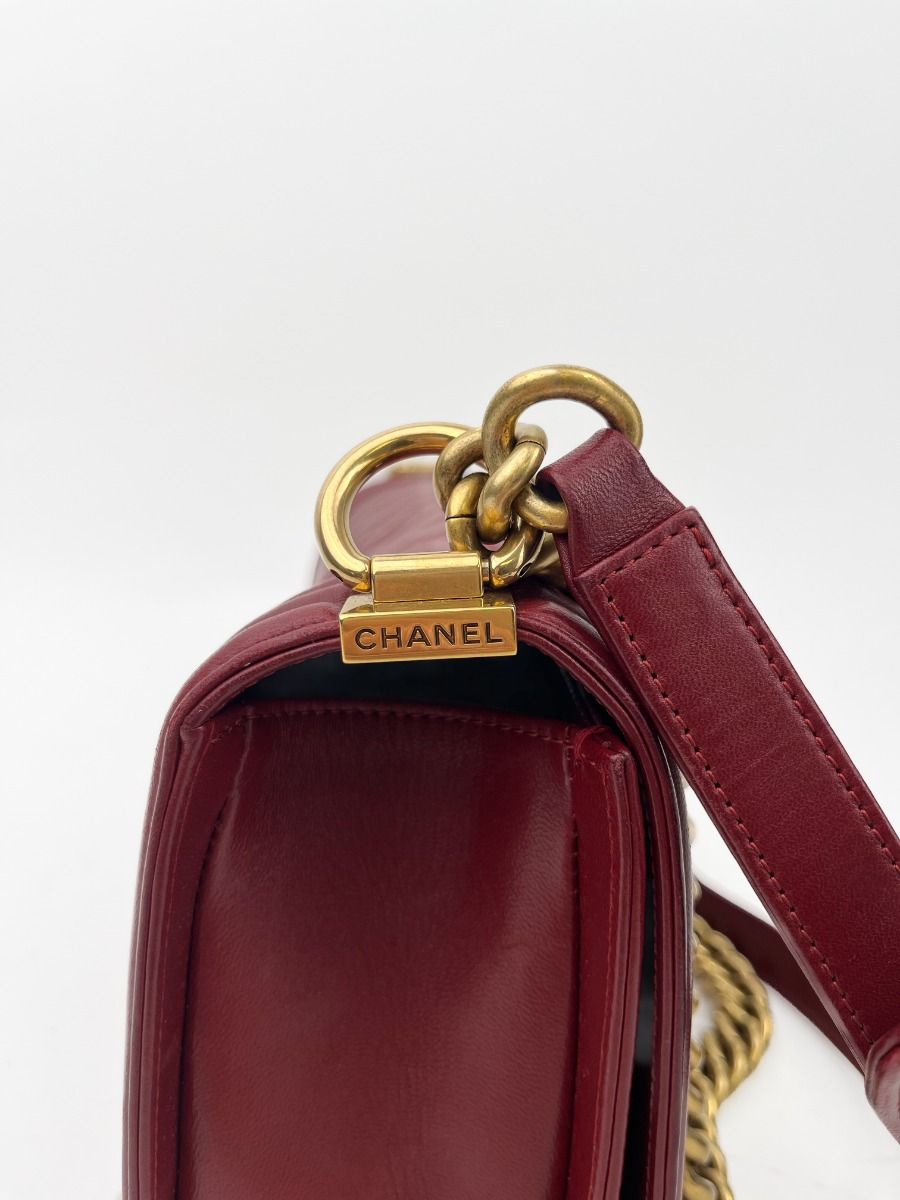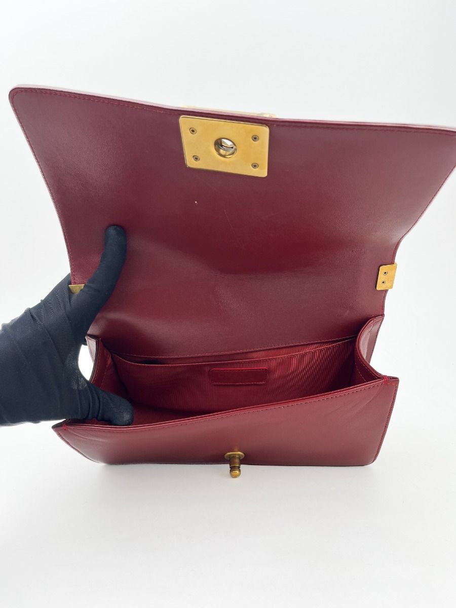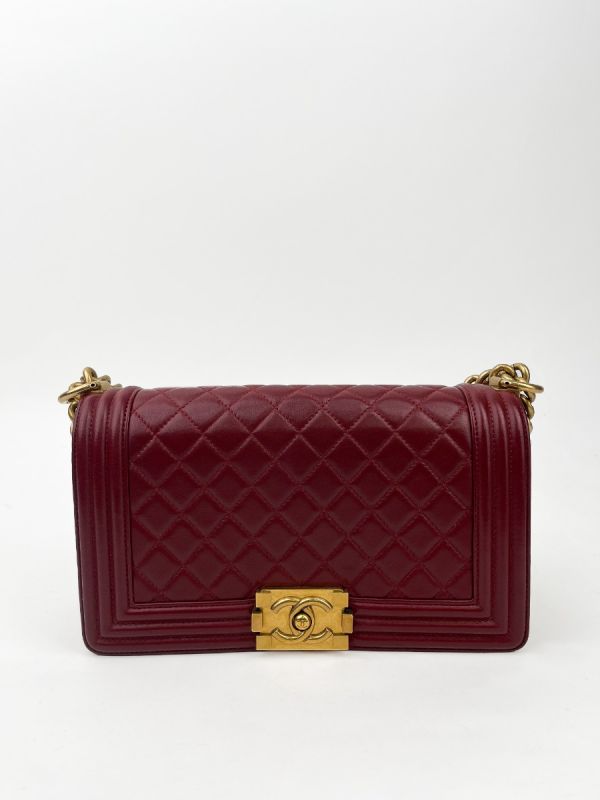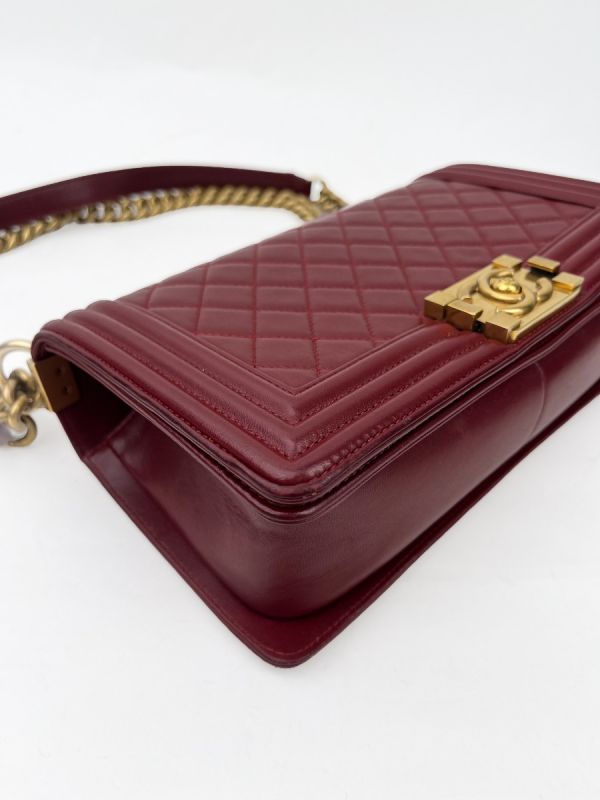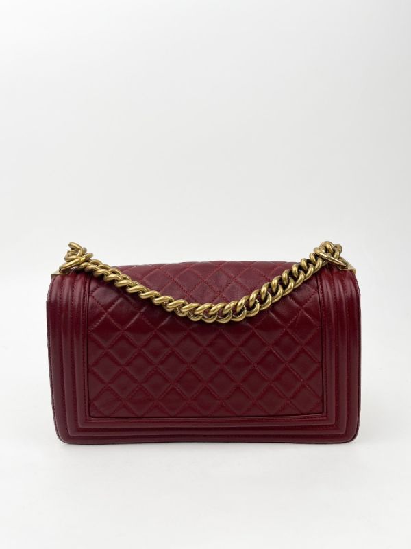 Sac à Main Chanel Boy en Cuir Matelassé Rouge Foncé