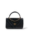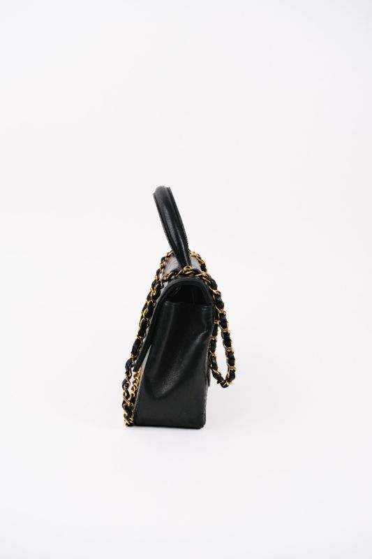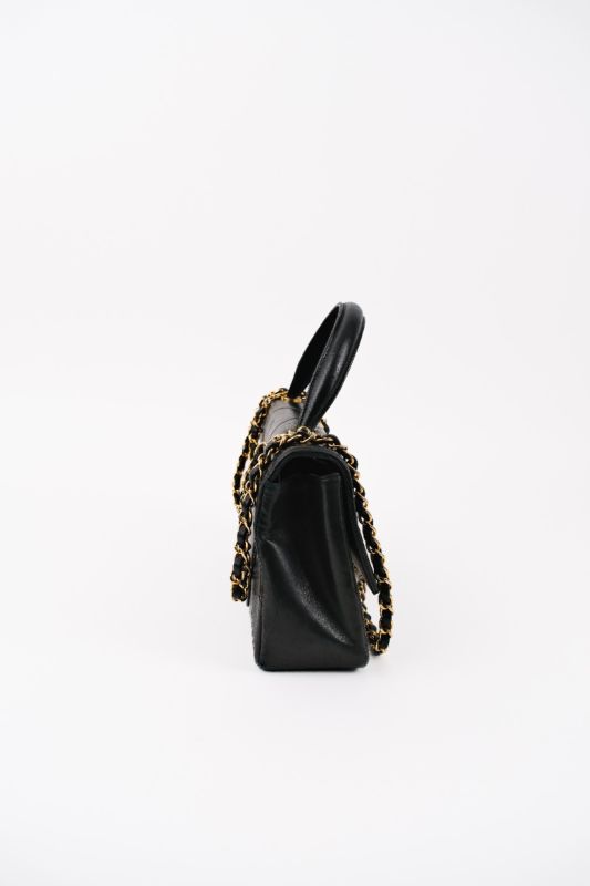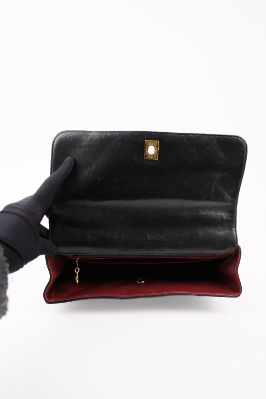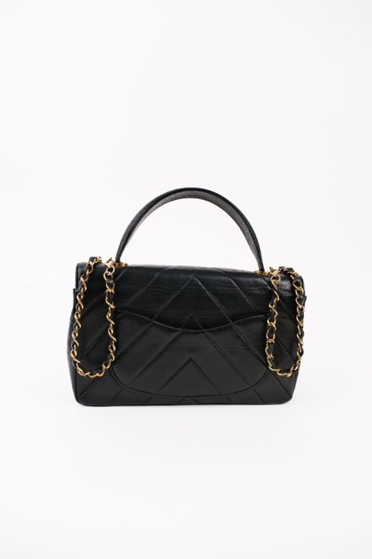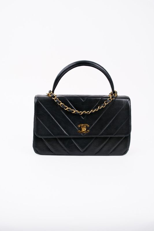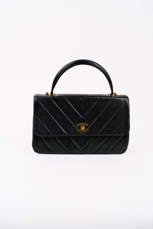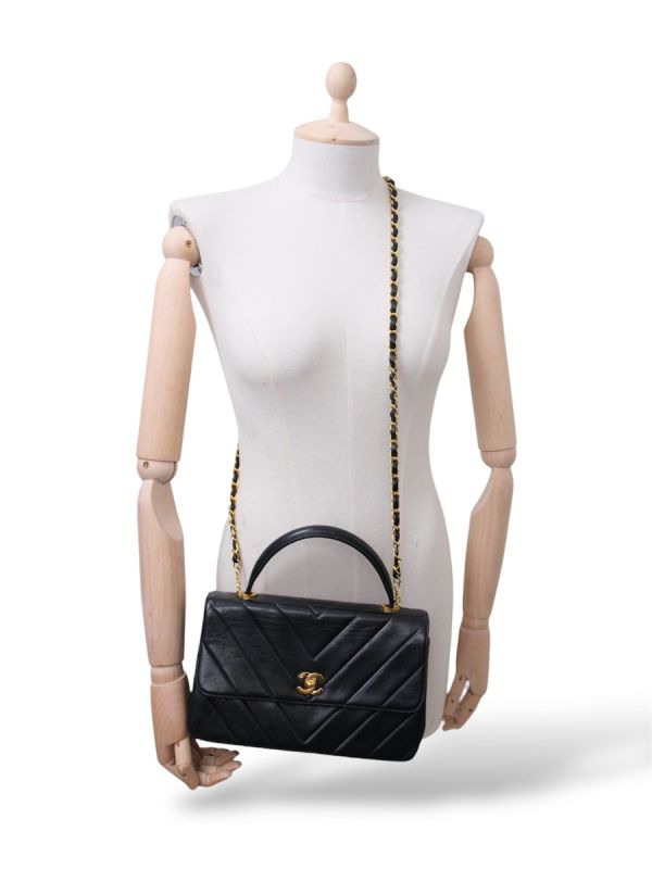 Sac à Main Chanel Vintage Chevron Flap En Cuir Noir