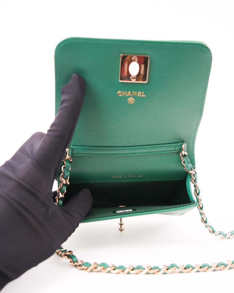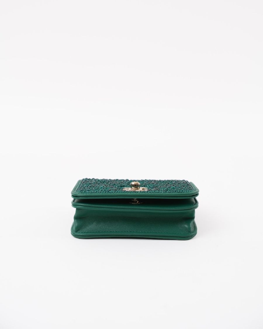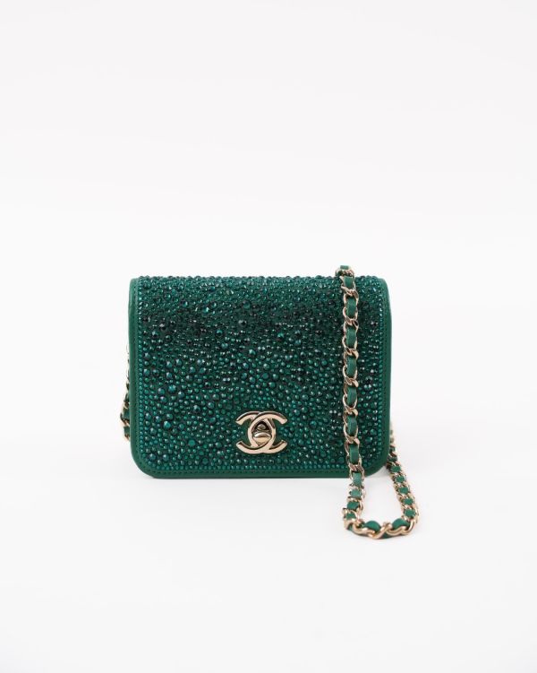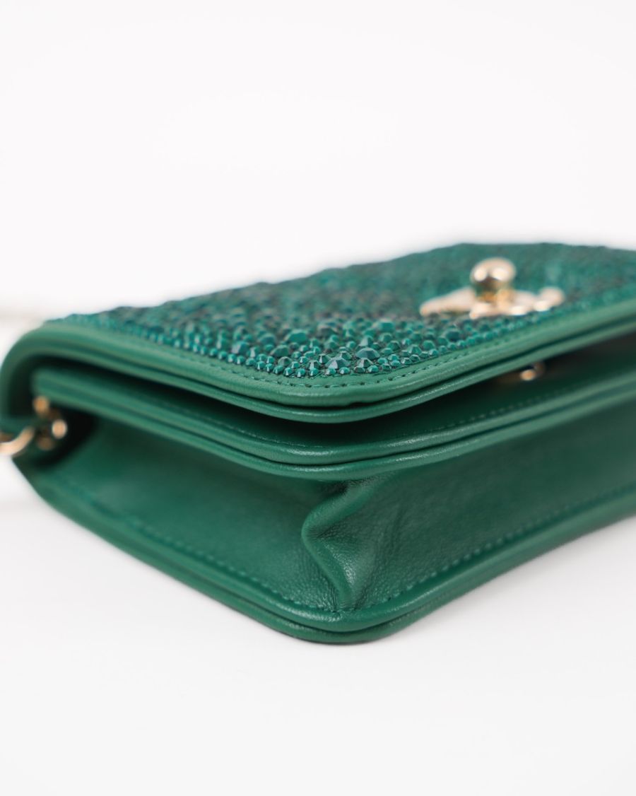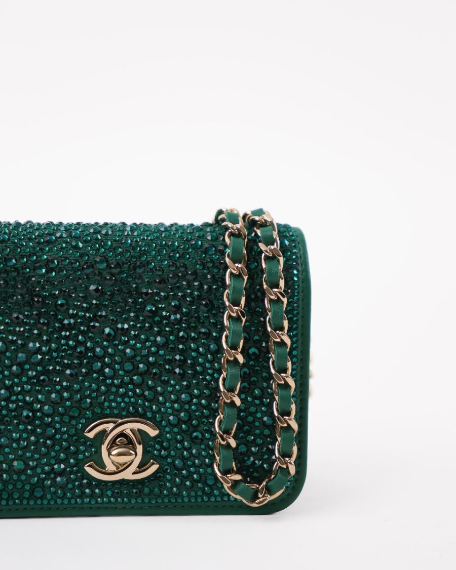 Sac à Main Chanel En Cuir Vert Avec Cristaux Swarovski