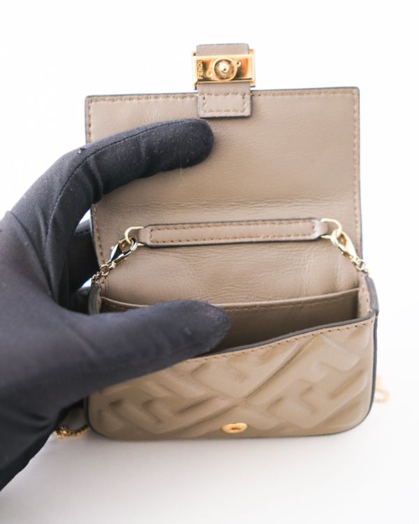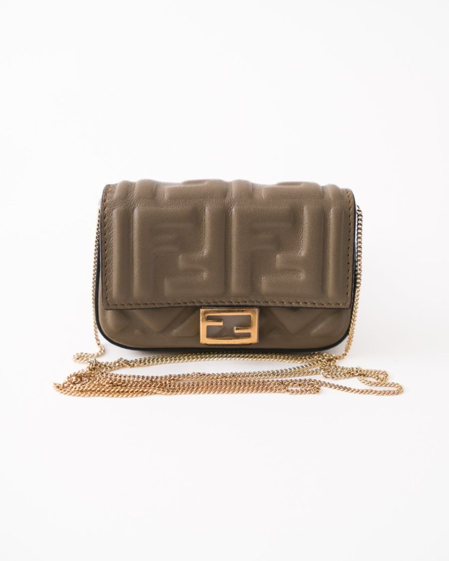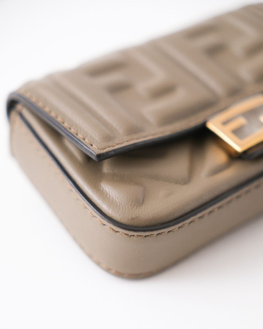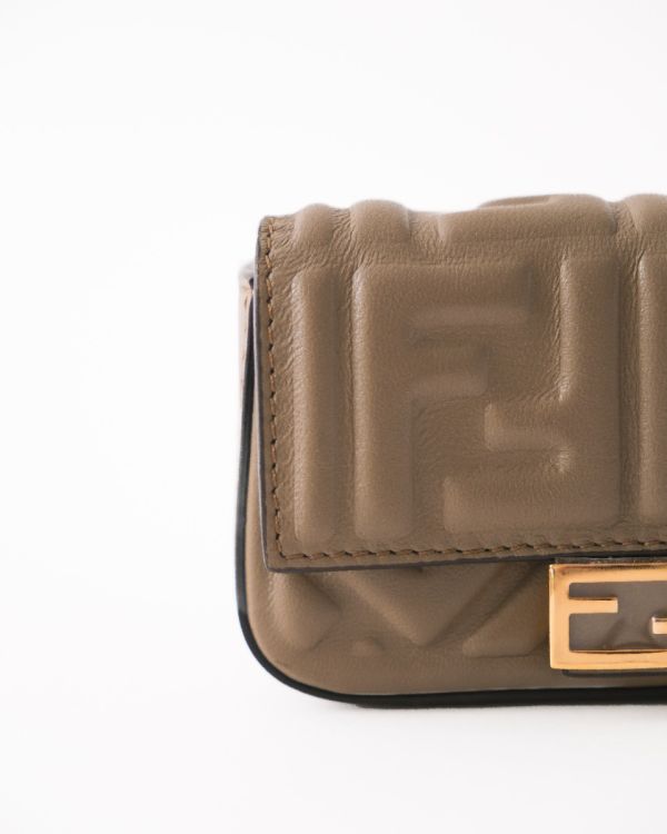Sac à Main Fendi Nano Baguette Charm En Cuir Monogram Taupe