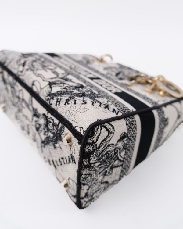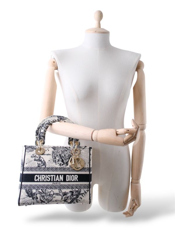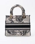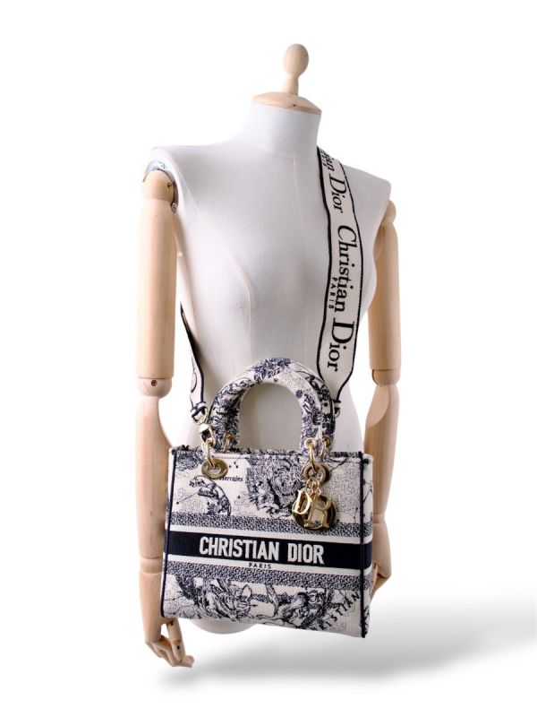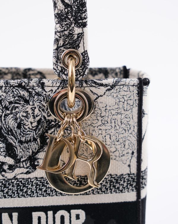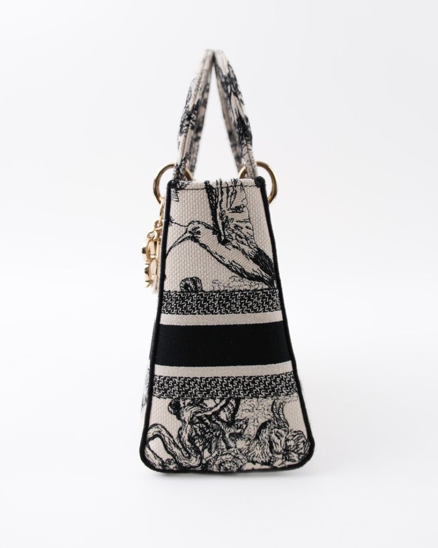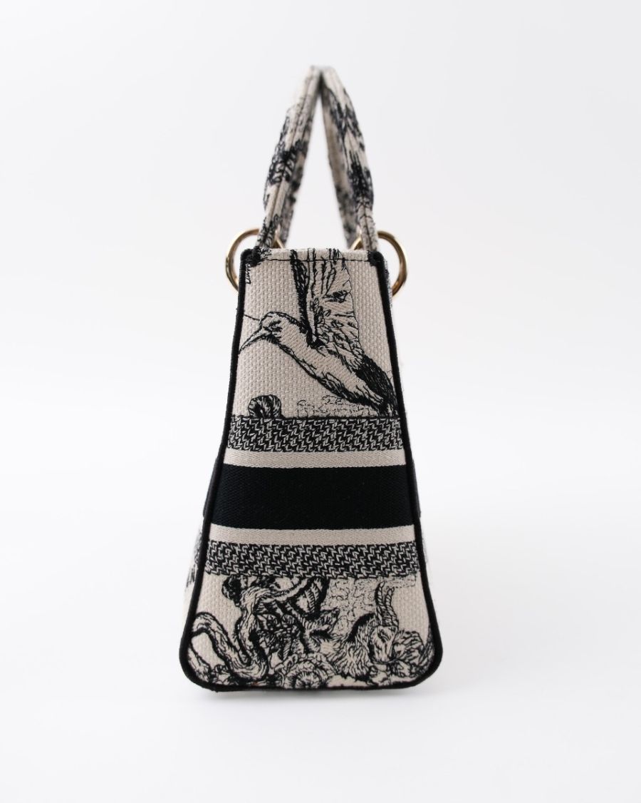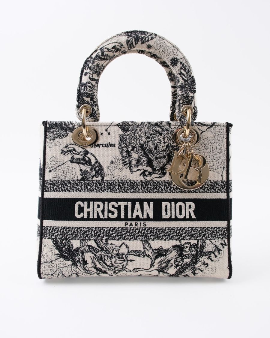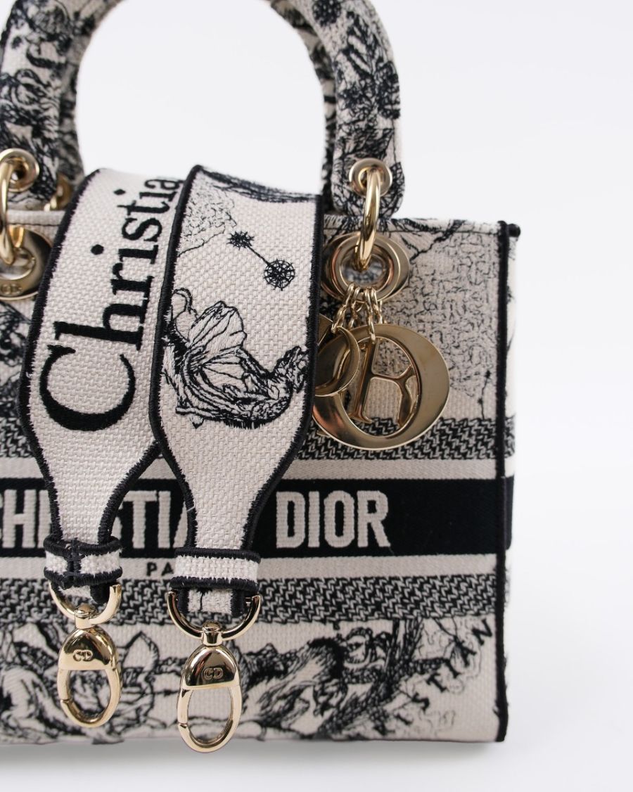 Ce sac iconique Christian Dior séduit par sa toile brodée noire et blanche ornée du motif Toile de Jouy, signature emblématique de la Maison. Son format structuré, ses anses élégantes et sa bandoulière ajustable en font un modèle aussi chic que pratique. Une pièce couture au caractère affirmé, idéale pour sublimer un look avec élégance et modernité.