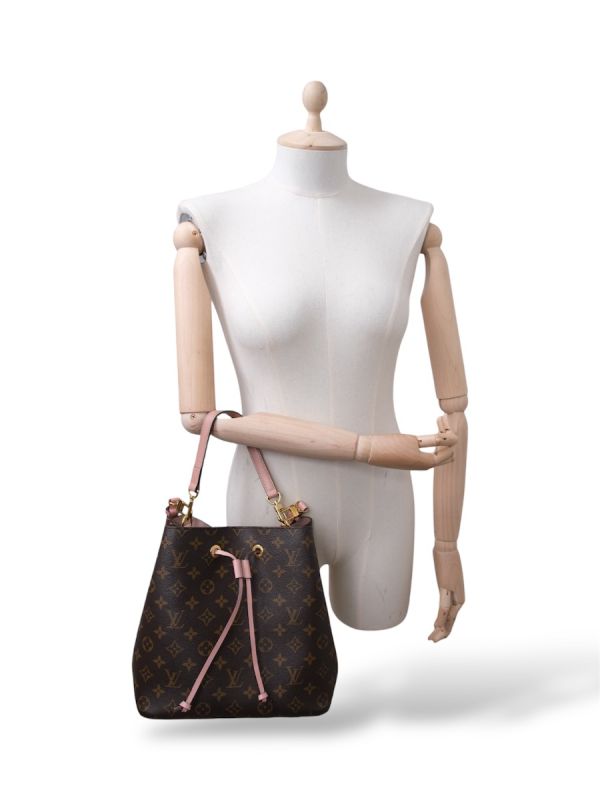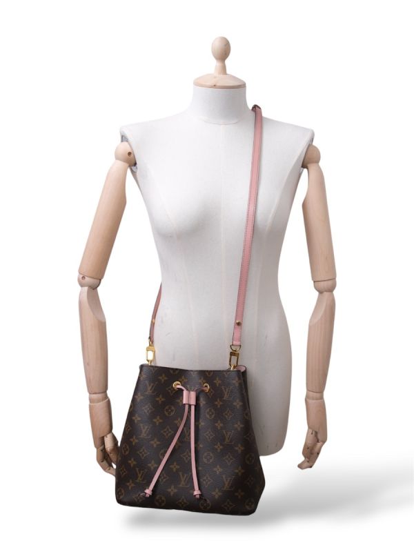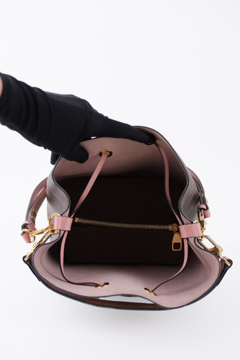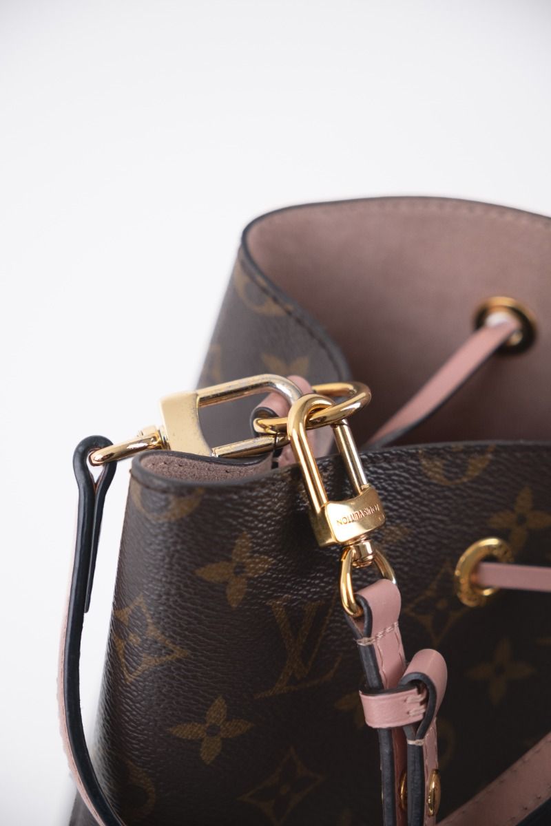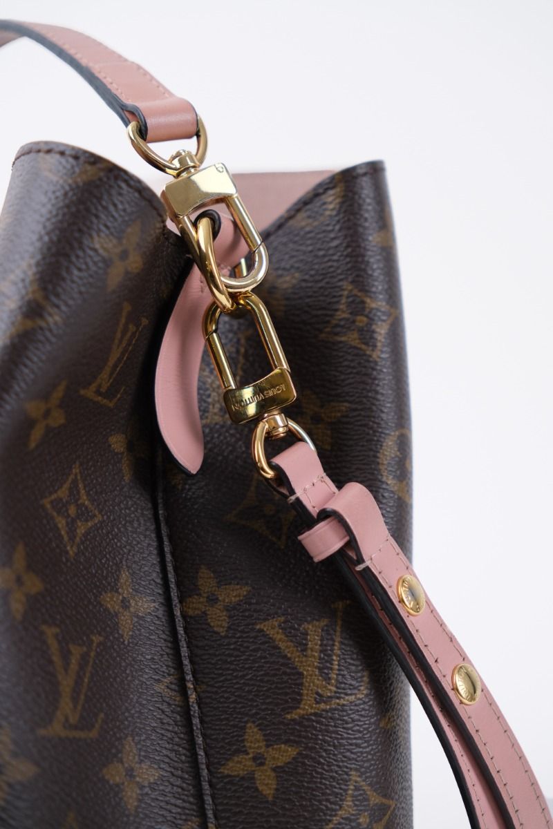 Sac iconique Louis Vuitton, ce modèle Néonoé en toile Monogram est sublimé par des finitions en cuir rose et une bijouterie dorée élégante. Son format seau intemporel offre un porté épaule confortable tout en apportant une touche féminine et raffinée à vos tenues du quotidien. Une petite anse a été ajoutée, permettant également un porté main en toute élégance.